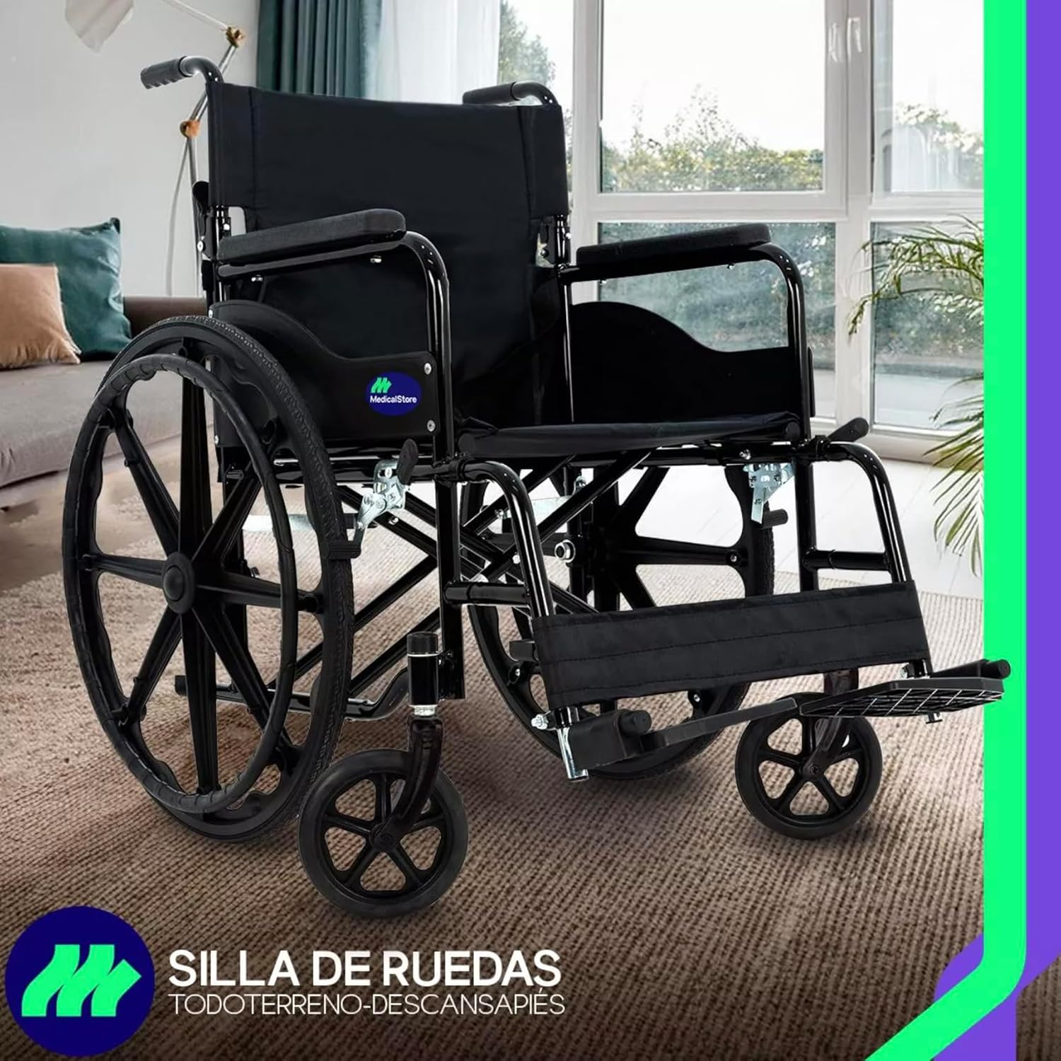 MEDICAL STORE Silla De Ruedas Ligera Adulto Mayor Todo Terreno Traslado Plegable Compacta Con Freno De Mano Rehabilitación Con Descansa Pies Abatible