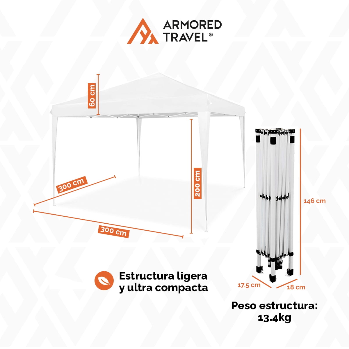 Toldo plegable Carpa retráctil Impermeable Armored Travel para exteriores Reforzado 3x3 M Blanco