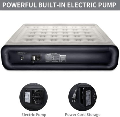 InnoTruth Colchón de aire Queen con bomba incorporada, cama de aire inflable elevada para camping, colchón inflable de doble altura con bolsa de transporte portátil, negro frío, Queen (80 x 60 x 18 pulgadas)