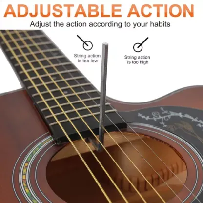 Estructura de madera dura de alta calidad: la guitarra está hecha de madera de abeto de clase a apoyada por X y es famosa por su elasticidad y versatilidad, mientras que bassmu se mantiene caliente. Ya sea suave o fuerte, tocado o plano, la guitarra mantiene la capacidad de respuesta y mantiene la integridad de su tono.