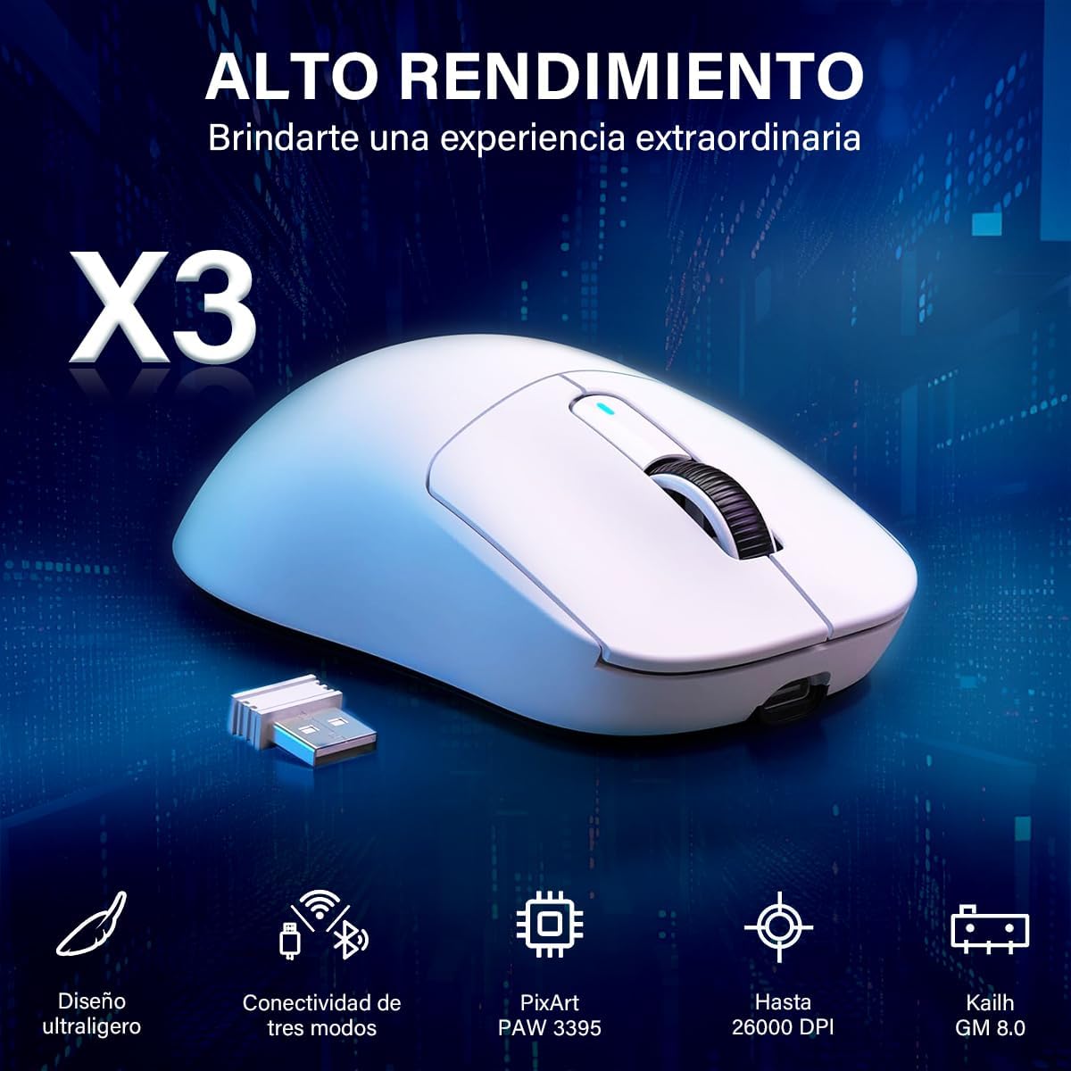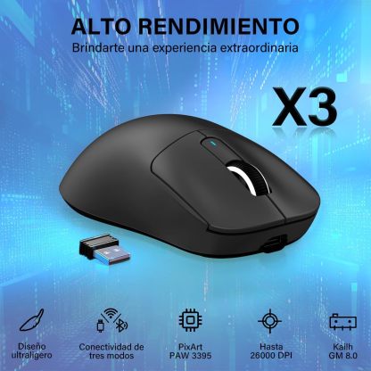 • SENSOR ÓPTICO AVANZADO PIXART PAW3395:Mouse gamer inalambrico está equipado con el sensor óptico insignia Pixart 3395, que ofrece 6 niveles de DPI ajustables (800/1600/2400/3200/5000/26000), velocidad de 650IPS, aceleración de 50G y frecuencia de sondeo de 1000HZ/1ms, lo que permite una respuesta rápida y un posicionamiento preciso, y está hecho a medida para los entusiastas de los juegos.