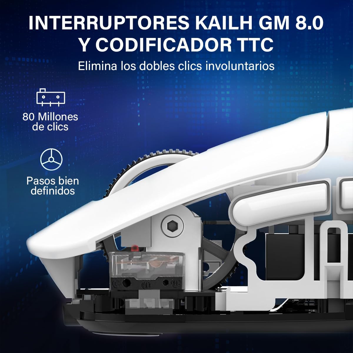 • KAILH GM8.0 Y 80 MILLONES DE CLICS:Mouse inalámbrico está equipado con KAILH GM8.0 microinterruptor de 3 pines. Fuerza de liberación 25gf (min), fuerza de funcionamiento 65±10gf, carrera de conducción 0.3±0.2mm, táctil 25%, cada clic es sonido nítido, rebote rápido, gatillo rápido, no doble clic, vida de clic de más de 80 millones de veces, para asegurar que el ratón estabilidad duradera.