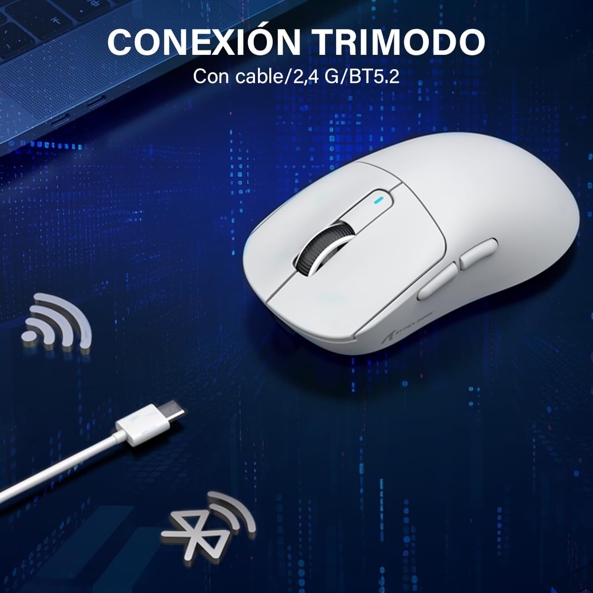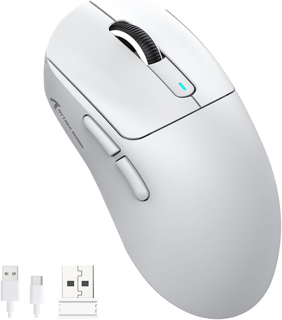 ATTACK SHARK X3 Mouse Gamer Inalámbrico, Mouse Recargable de 3 Modos Bluetooth/2.4GHz/USB-C, 49g Mouse Ligero, 26000DPI, Botones Programables,200H Duración de La Batería, para PC/Mac/Laptop