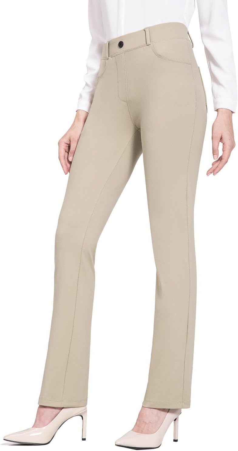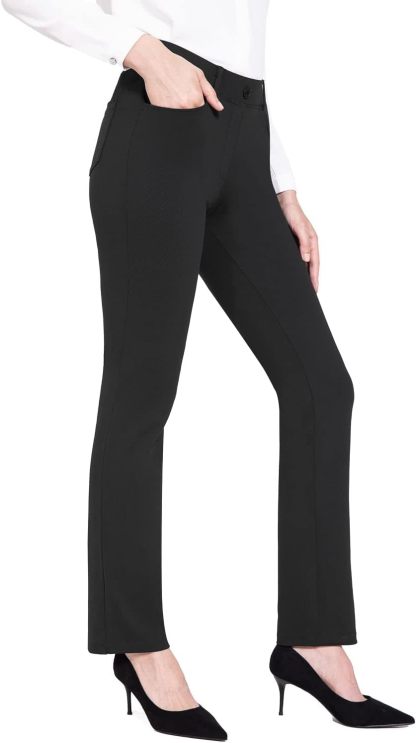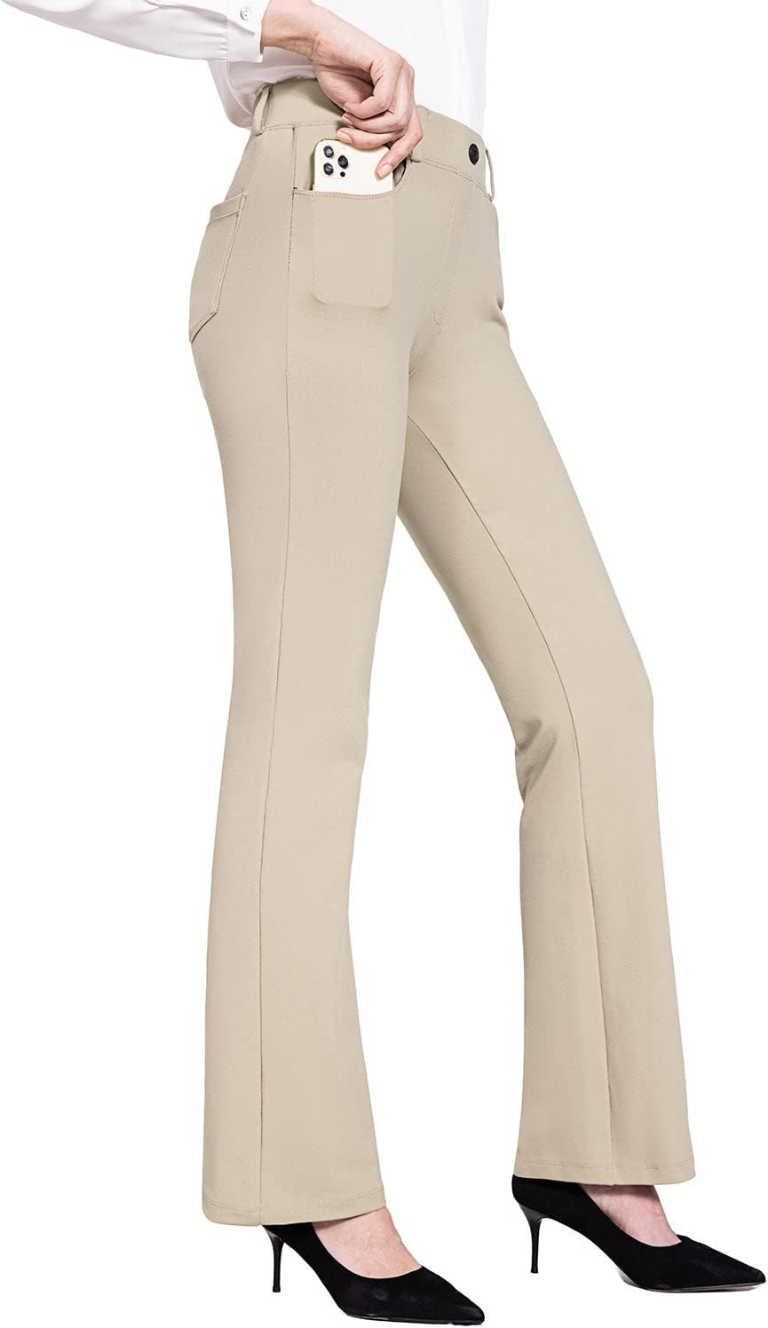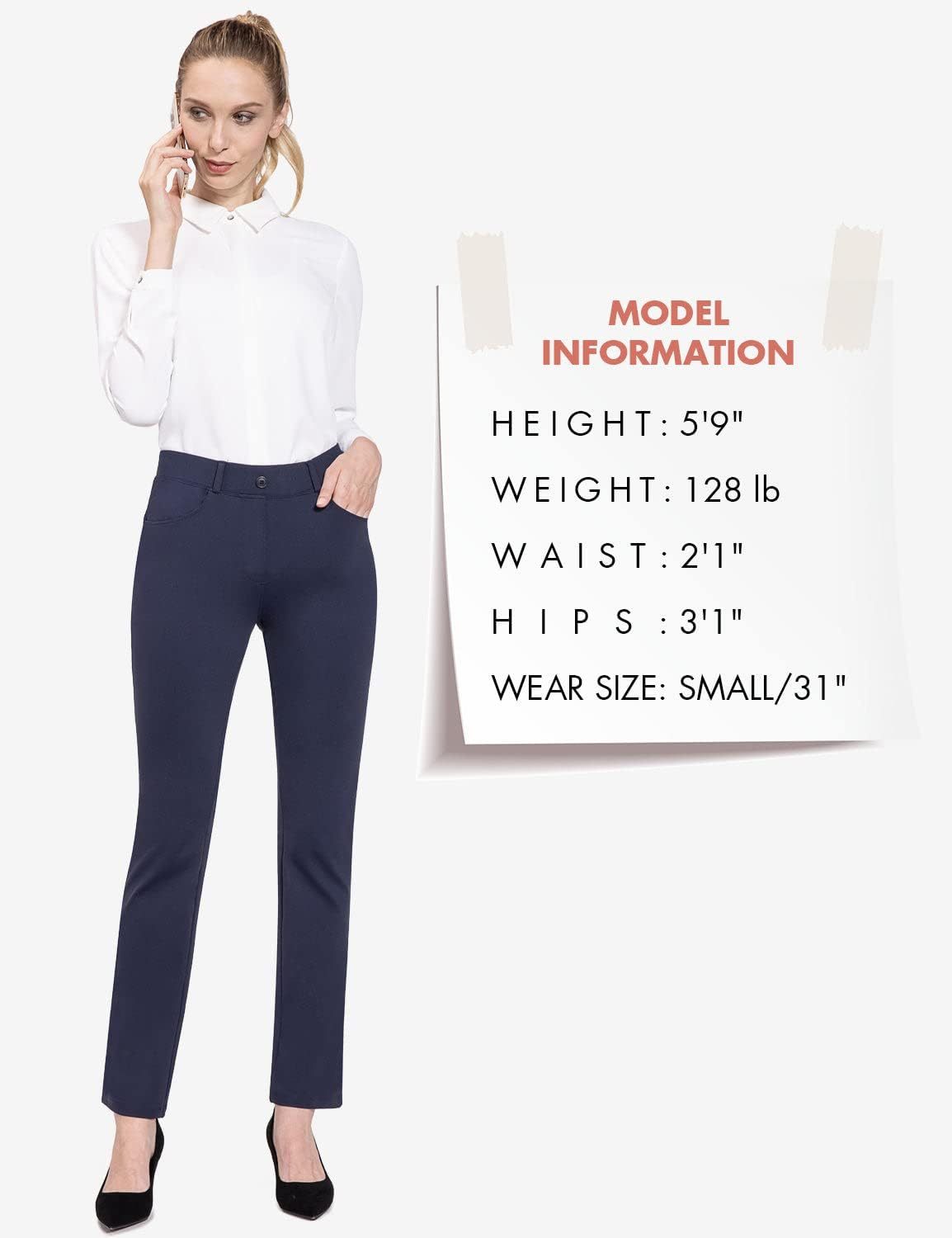 BALEAF - Pantalones de yoga para mujer, pierna recta, sin cierre, elásticos, para el trabajo, oficina, negocios, pantalones casuales con bolsillos. Tela: 87% nailon, 13% elastano, no se transparentan y cierre elástico durante todo el día. Comodidad: tela elástica en cuatro direcciones, tela de yoga no transparente sin diseño de cierre que proporciona una experiencia de comodidad durante todo el día. Vestido para el trabajo: trabillas para cinturón, bragueta sintética y un botón no funcional en la cintura para el estilo de los pantalones de vestir, hacen que tu atuendo esté listo para el negocio. 4 bolsillos funcionales: 2 bolsillos diagonales estilo oficina en la parte delantera, lo suficientemente profundos para teléfono celular, 2 bolsillos de parche en la parte posterior. Ajuste de pierna recta: cierre elástico de tiro medio y ajustado a través de la cadera y el muslo, con una pierna recta para adelgazar tu silueta. Pantalones de vestir de yoga Baleaf se ven muy bien con zapatos de tacón, zapatos planos o deportivos, combinan bien con trajes, camisas o uso diario.
