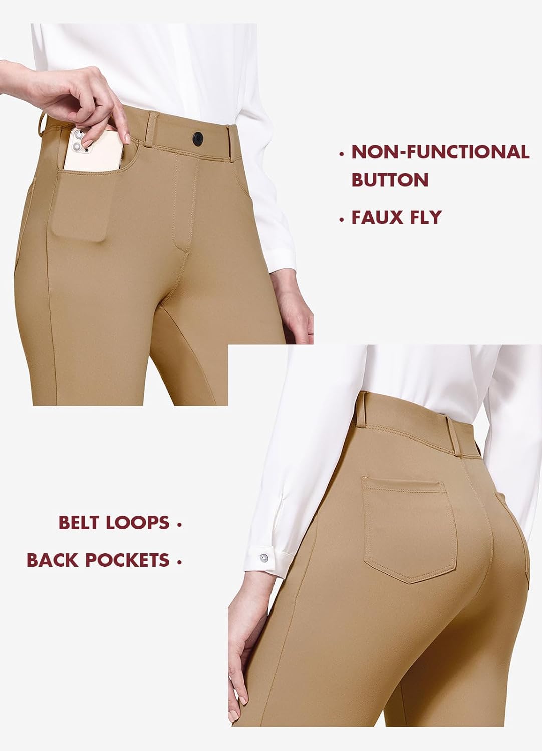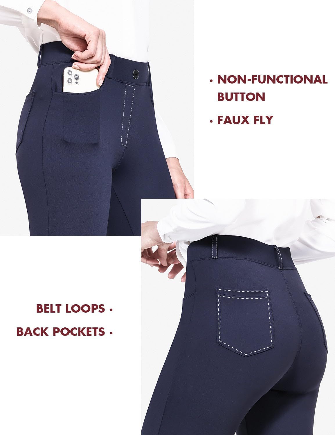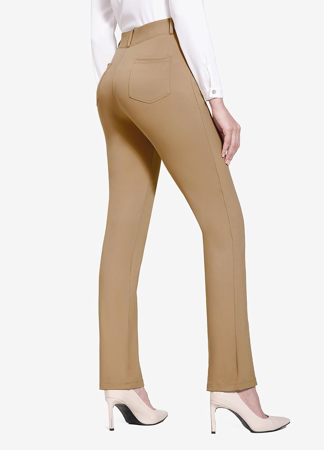 BALEAF - Pantalones de yoga para mujer, pierna recta, sin cierre, elásticos, para el trabajo, oficina, negocios, pantalones casuales con bolsillos. Tela: 87% nailon, 13% elastano, no se transparentan y cierre elástico durante todo el día. Comodidad: tela elástica en cuatro direcciones, tela de yoga no transparente sin diseño de cierre que proporciona una experiencia de comodidad durante todo el día. Vestido para el trabajo: trabillas para cinturón, bragueta sintética y un botón no funcional en la cintura para el estilo de los pantalones de vestir, hacen que tu atuendo esté listo para el negocio. 4 bolsillos funcionales: 2 bolsillos diagonales estilo oficina en la parte delantera, lo suficientemente profundos para teléfono celular, 2 bolsillos de parche en la parte posterior. Ajuste de pierna recta: cierre elástico de tiro medio y ajustado a través de la cadera y el muslo, con una pierna recta para adelgazar tu silueta. Pantalones de vestir de yoga Baleaf se ven muy bien con zapatos de tacón, zapatos planos o deportivos, combinan bien con trajes, camisas o uso diario.