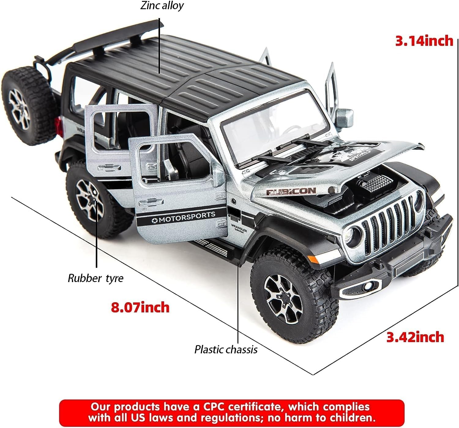 ¿Cuáles son las características de nuestro modelo de coche1. Presione la rueda delantera para activar el sonido del motor y los faros delanteros y traseros2. El diseño de doble puerta del vagón permite la apertura de las dos puertas en ambos lados3. La carcasa del cuerpo está hecha de material de aleación, que no es fácil de romper4. Coloque el automóvil en el suelo plano, presione y sostenga el cuerpo y tire hacia atrás, el automóvil avanzará (con la función de tirar hacia atrás) Descripción: 1. Abra la caja y retire el aislante de la batería de la parte inferior del automóvil2. Presione la rueda delantera para activar el efecto de iluminación de sonido3. Presiona el botón en la parte inferior de la rueda delantera para abrir el capóPor qué elegir comprar este modelo Wrangler1. Este modelo con una proporción de 1/22 es muy similar al automóvil real en apariencia y puede brindar la información correcta sobre el conocimiento del automóvil a los niños2. Brindamos 100% de satisfacción con el servicio posventa, devolvemos los productos dentro de los 30 días posteriores a la recepción de los productos y 1 año de servicio posventa.