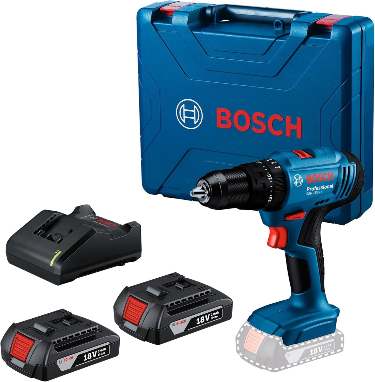Bosch GSB 183‑LI Rotomartillo Inalámbrico 18 V – 2 Baterías + Maletín – Taladro Percutor para Metal, Madera y Albañilería