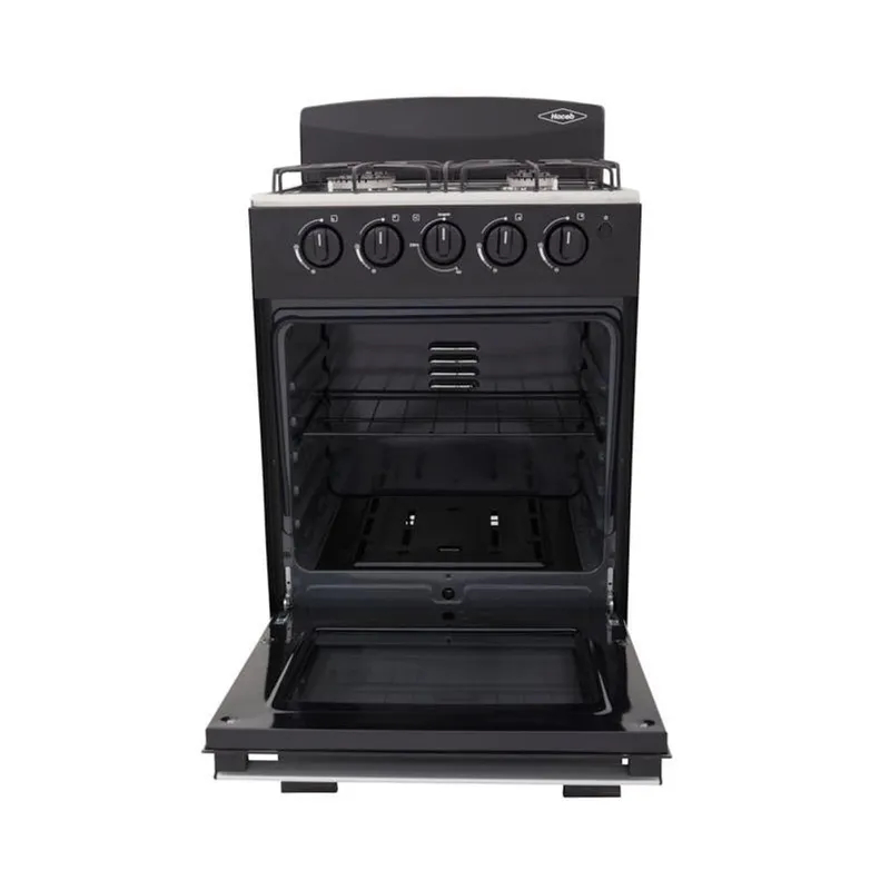 La estufa de la familia, Romero Haceb Torre negra gas natural, lograrecetas más rápidascon su fogón 35% más potente y de manera segura con susparrillas antideslizantes. Cocinar en el horno ahora será mejor gracias a suvisor 65%más amplio y hazlo de forma seguraevitandola fuga de gas.
