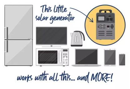 The Generator is an easy-to-use solar generator that is safe to use in your home. It can power your favorite appliances during dangerous power outages andrecharge them in the SUN OR AC POWER.