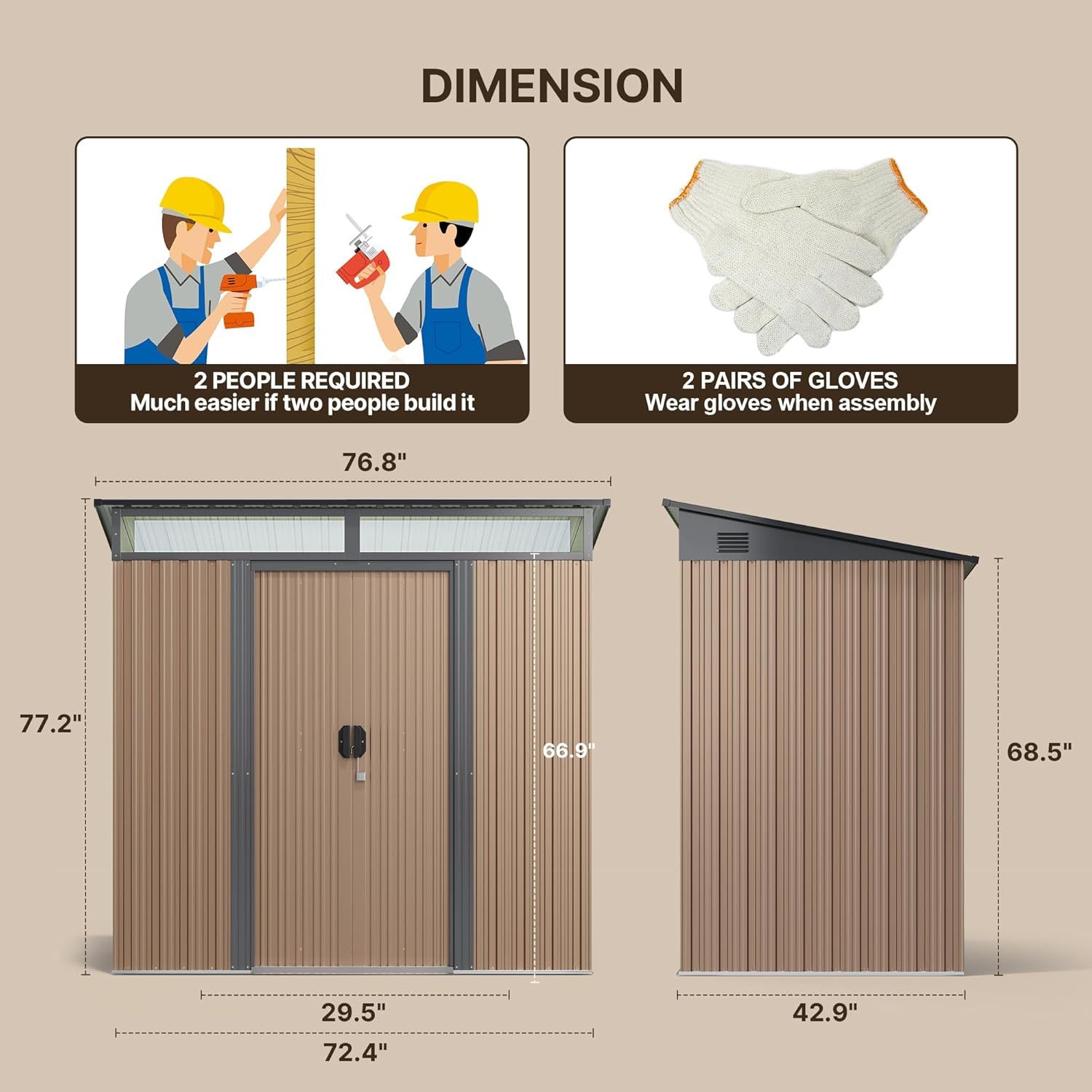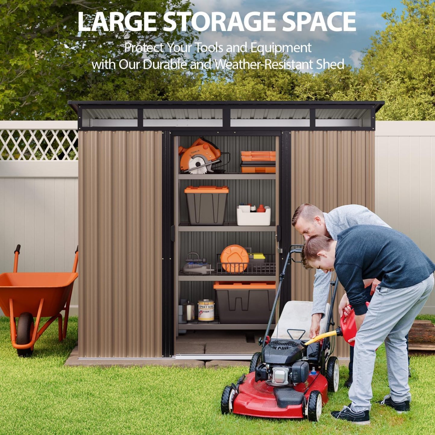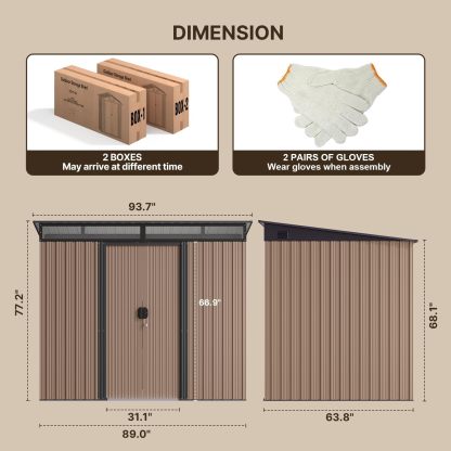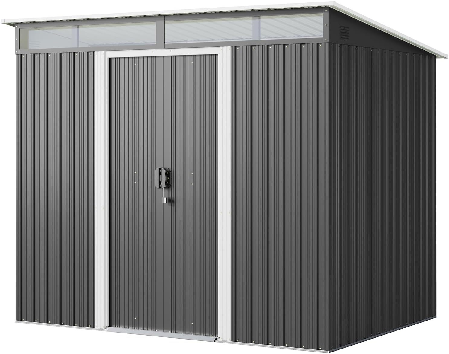 - Cobertizo de almacenamiento duradero: hecho de acero galvanizado de alta calidad, este cobertizo de metal es impermeable, resistente al óxido y protección UV, asegurando una durabilidad duradera incluso en condiciones climáticas adversas