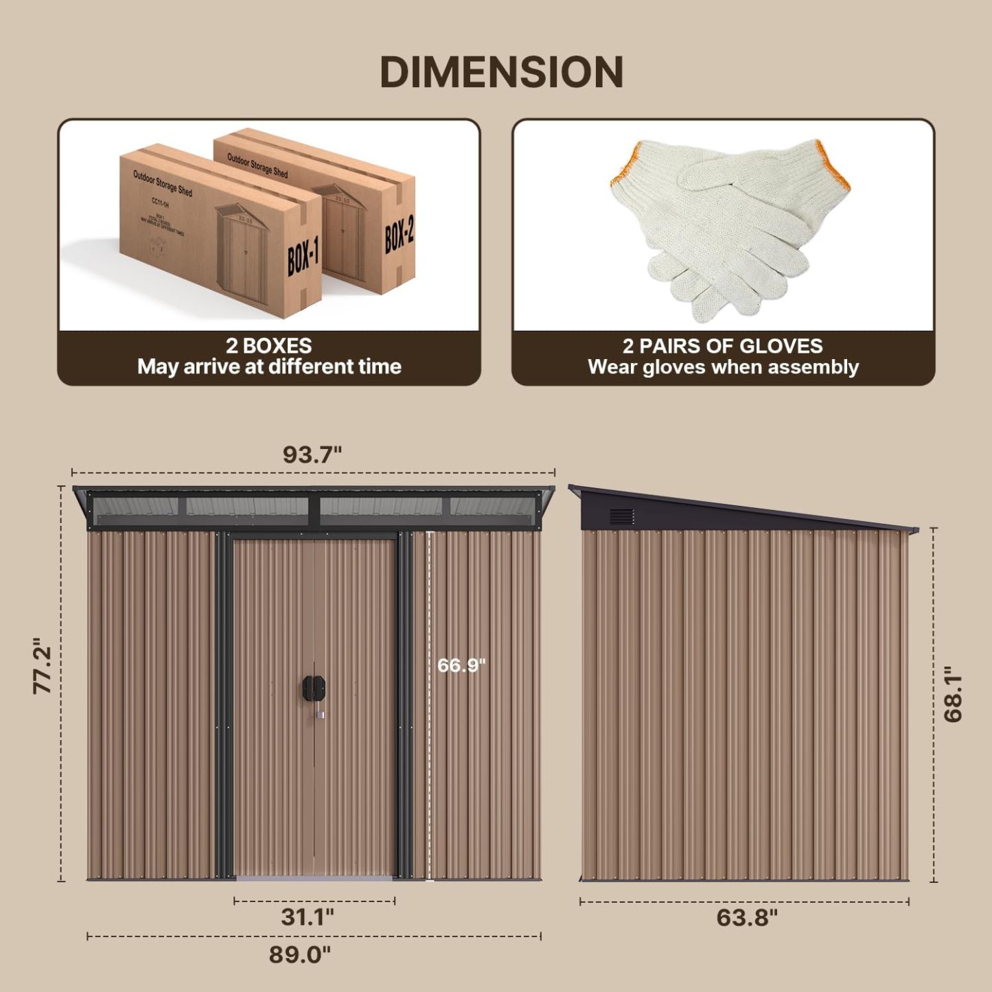 ⚠️ Este artículo necesita ser montado. Todas las piezas se entregan en un paquete con 1 cobertizo, 1 kit de tornillos, 1 guantes, 1 instrucciones de montaje