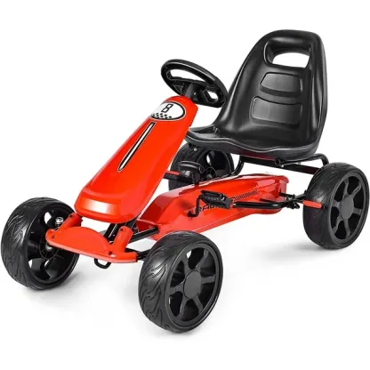 Diseño con pedales: los niños estarán felices de aprender a conducir con este go kart. No tendrás que preocuparte de la batería descargada porque funciona pedaleando. Los niños pueden conducirlo cuando quieren, mejorarán la fuerza de las piernas y crecerán sanos.