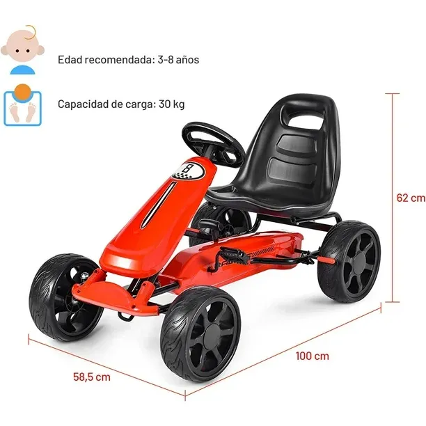 Go kart perfecto para carreras para niños: este go kart es el regalo perfecto para los niños que podrán hacer carreras. No solo los ayuda a mejorar la coordinación mano-ojo y el equilibrio cuando conducen, sino que promueve también la relación padre-hijo cuando les enseñan o juegas con ellos.