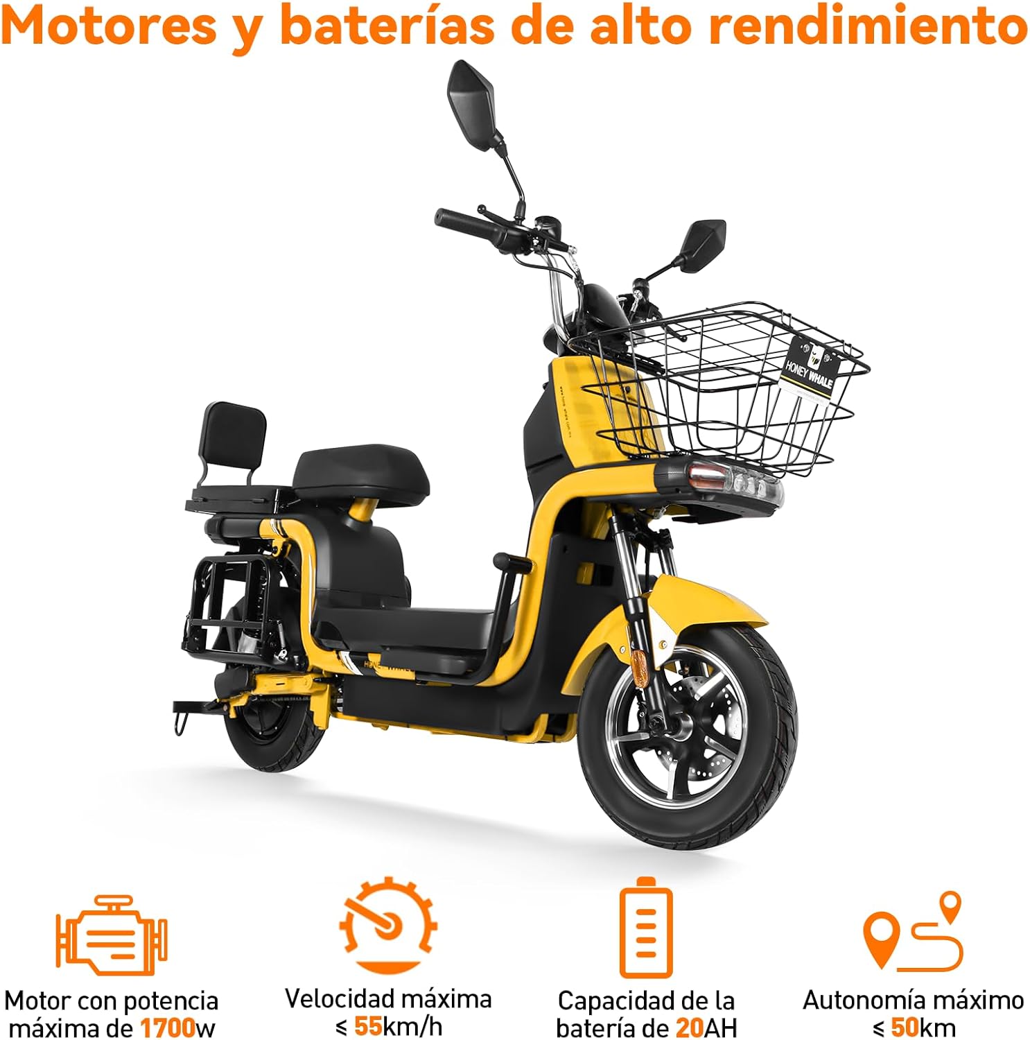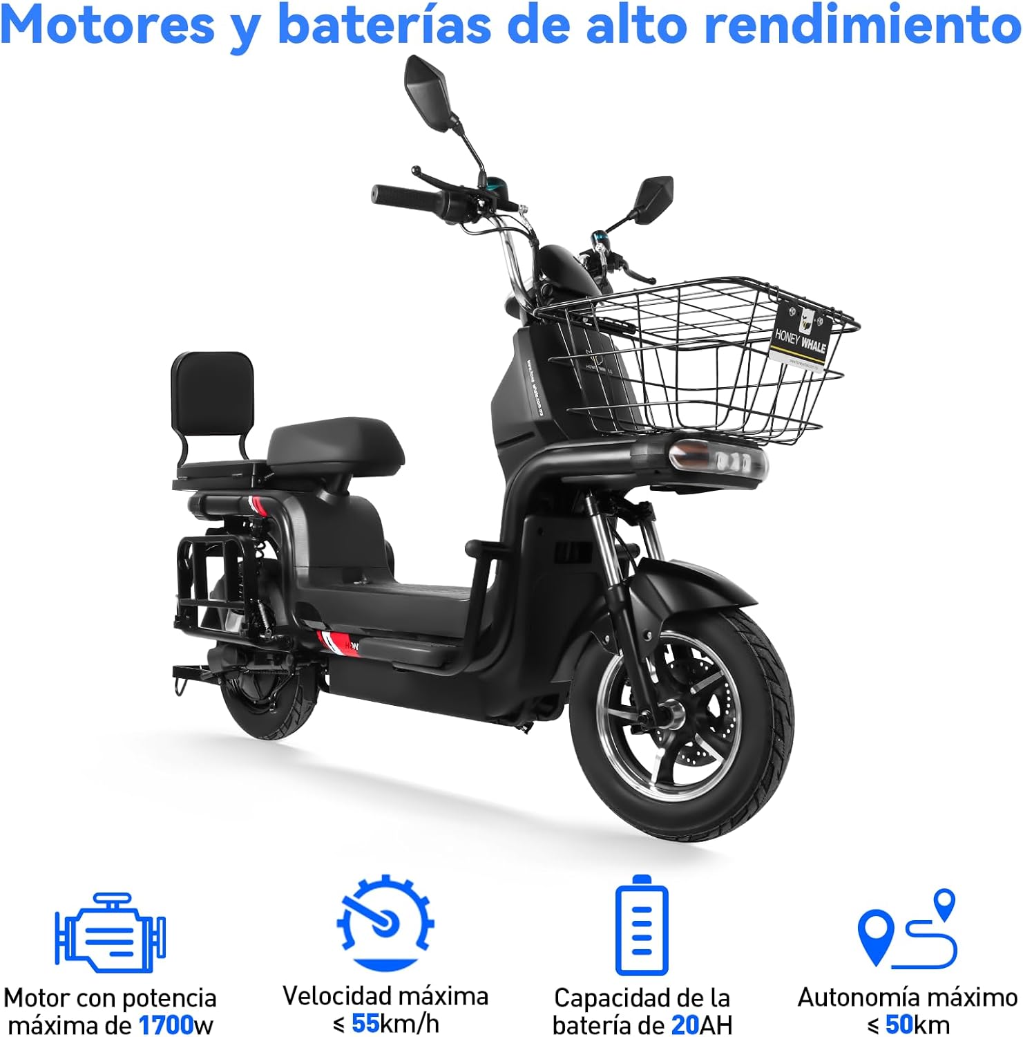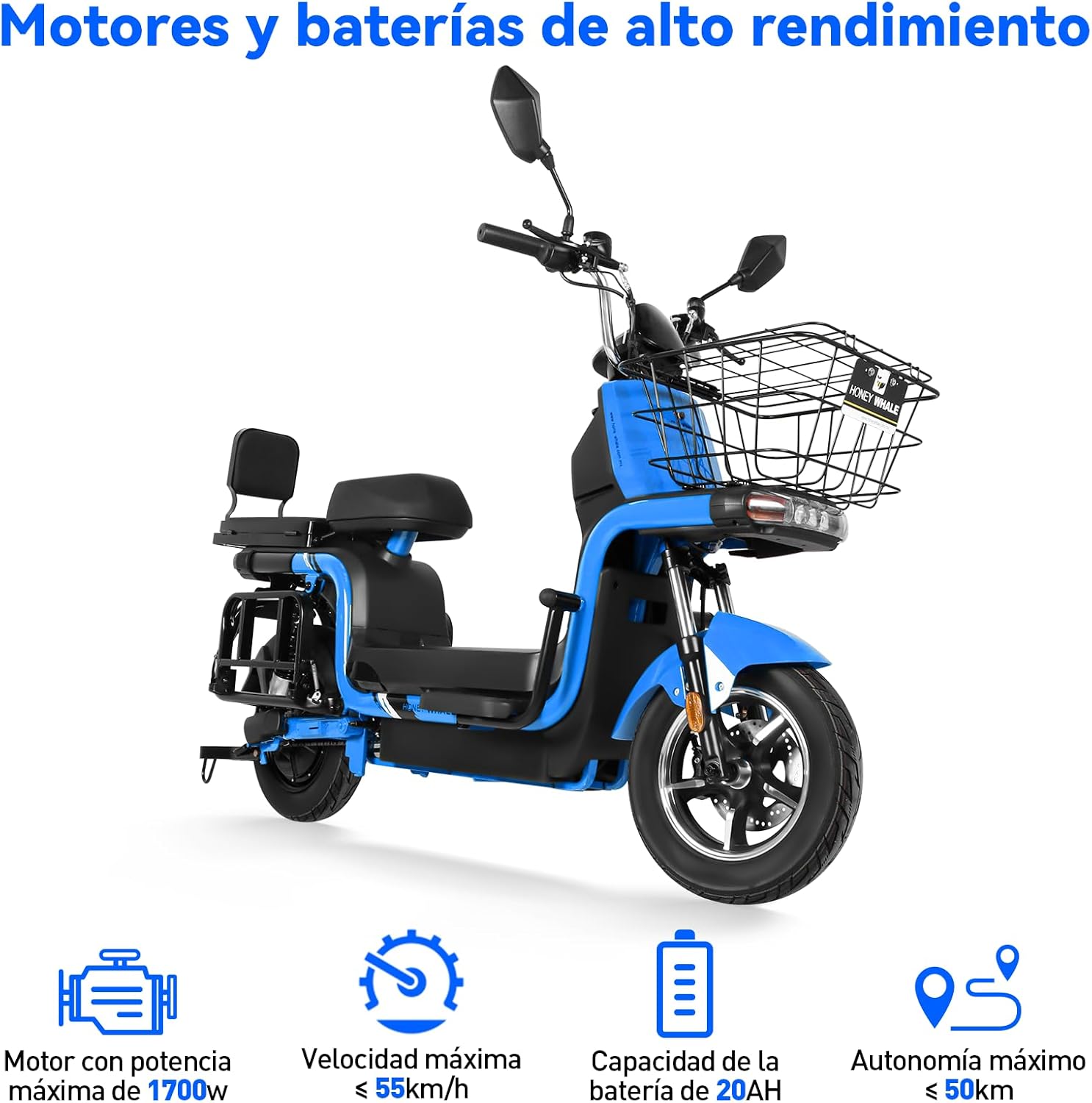 HONEYWHALE U7s Bicicleta Electrica para Adultos, Moto Eléctrica con Mando a Distancia con Alarma, Máxima del Motor 1700W, Velocidad Máxima 55KM/H, Autonomía 50KM, Baterías de Capacidad 20AH