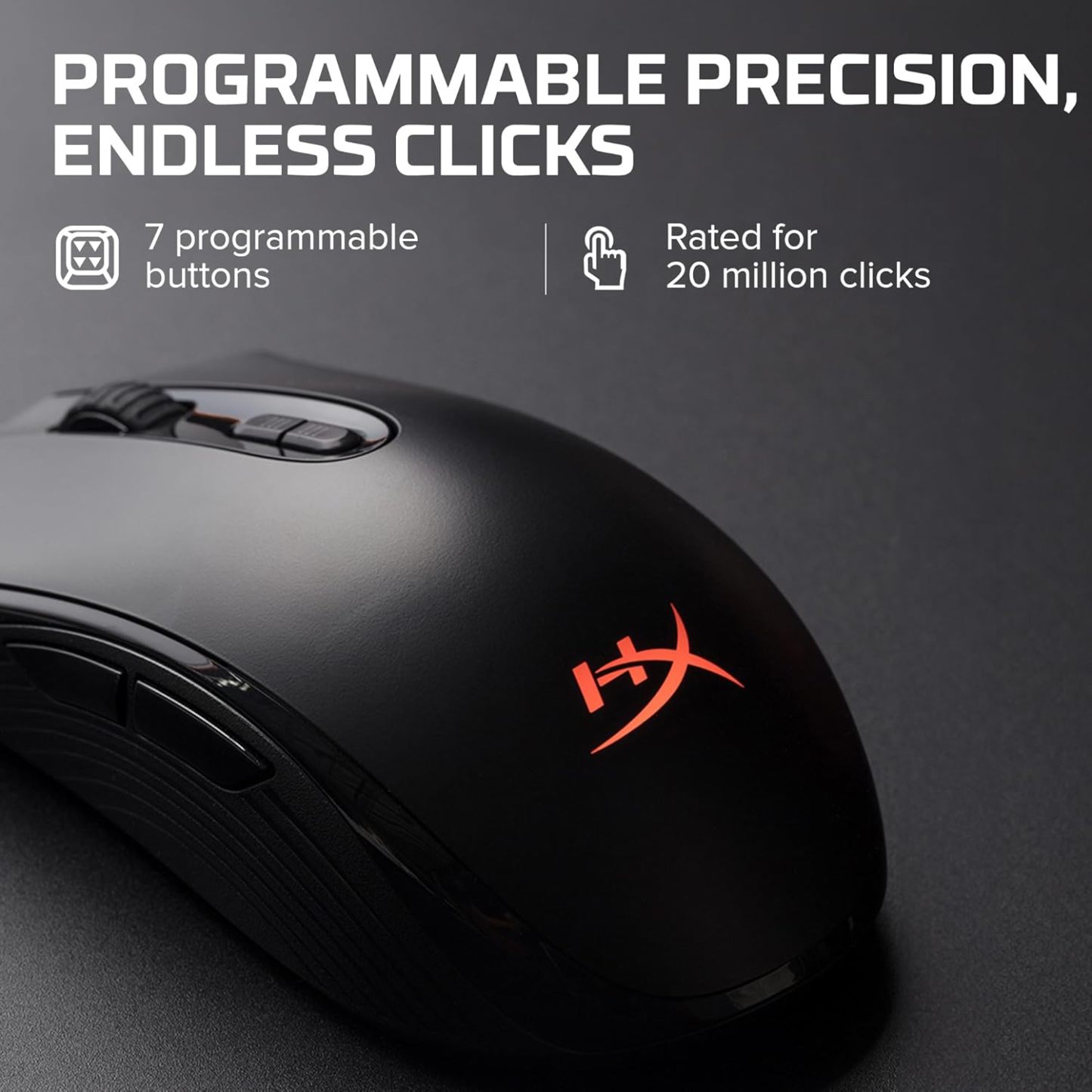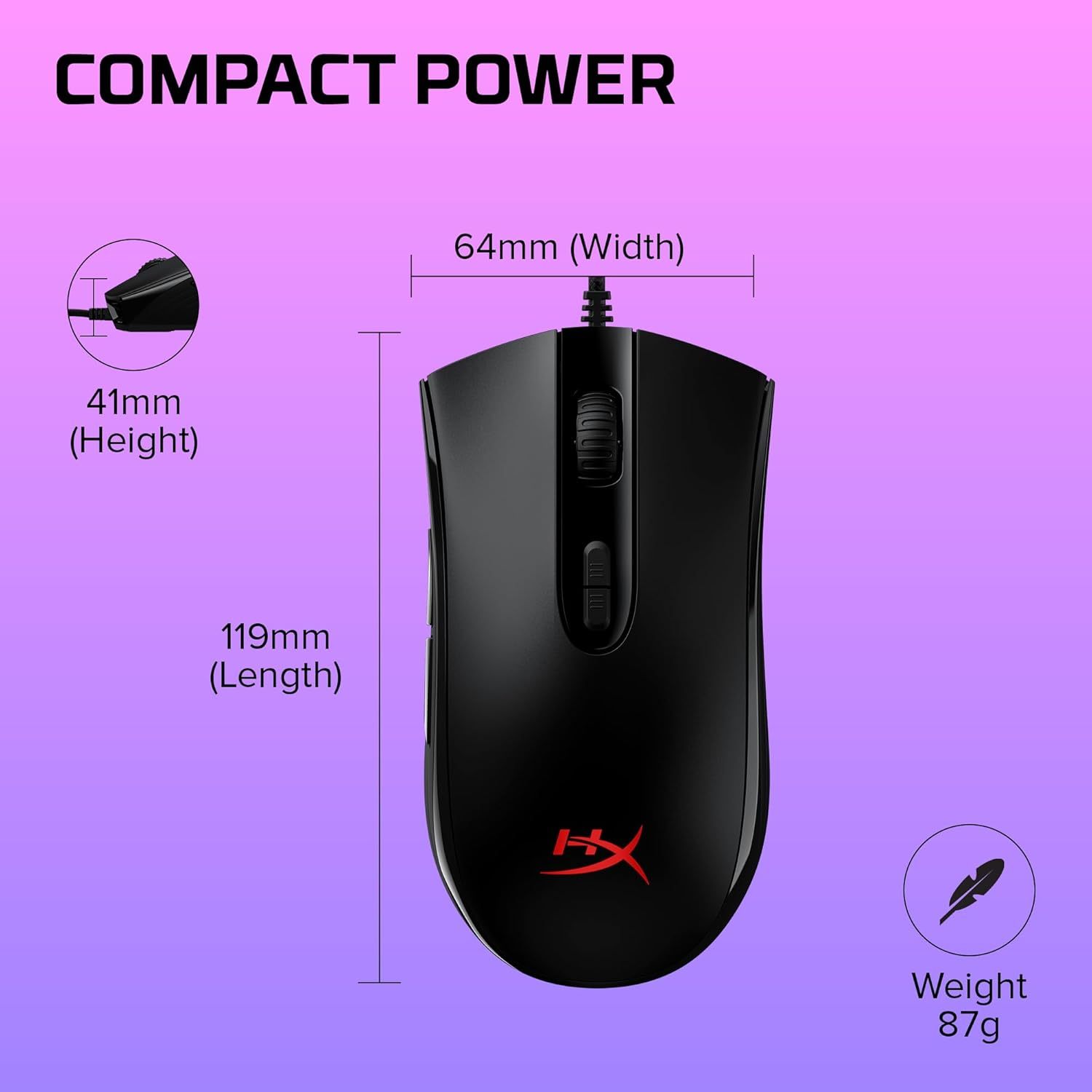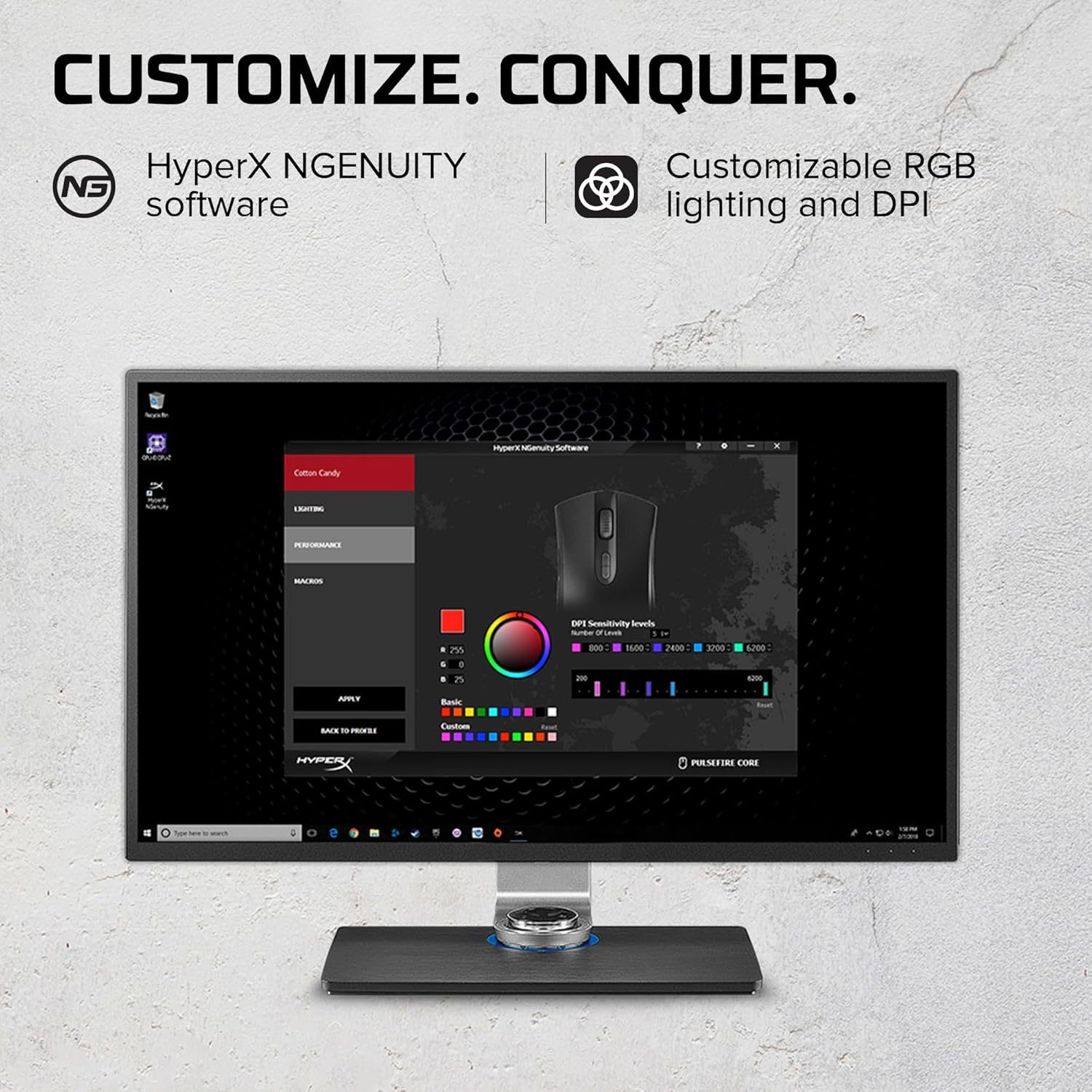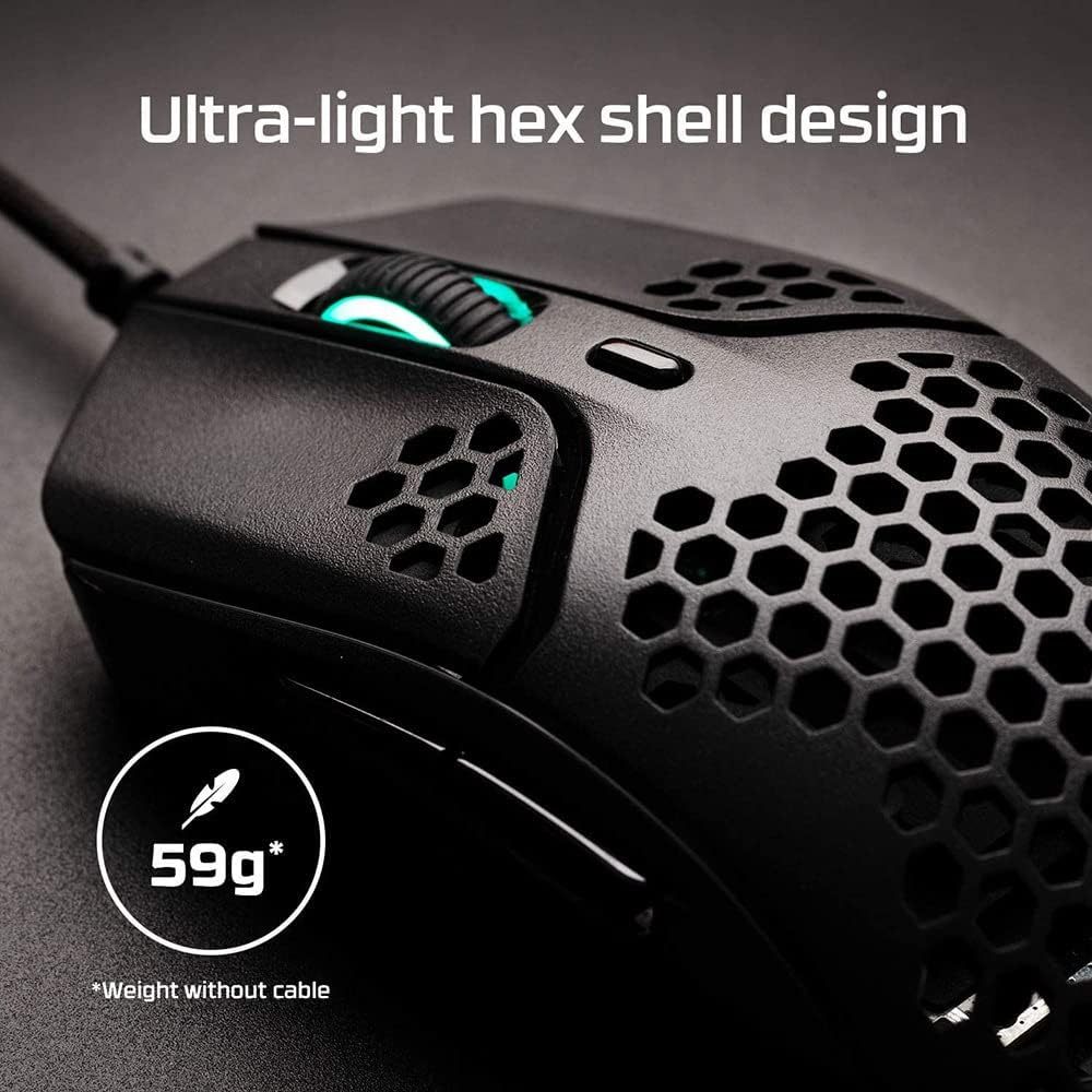HyperX Pulsefire Core RGB Mouse para gaming, Cómodo diseño simétrico, Siete botones programables (Ambidiestro, Óptico, USB, 6200 dpi, 123 g, Negro) HX-MC004B