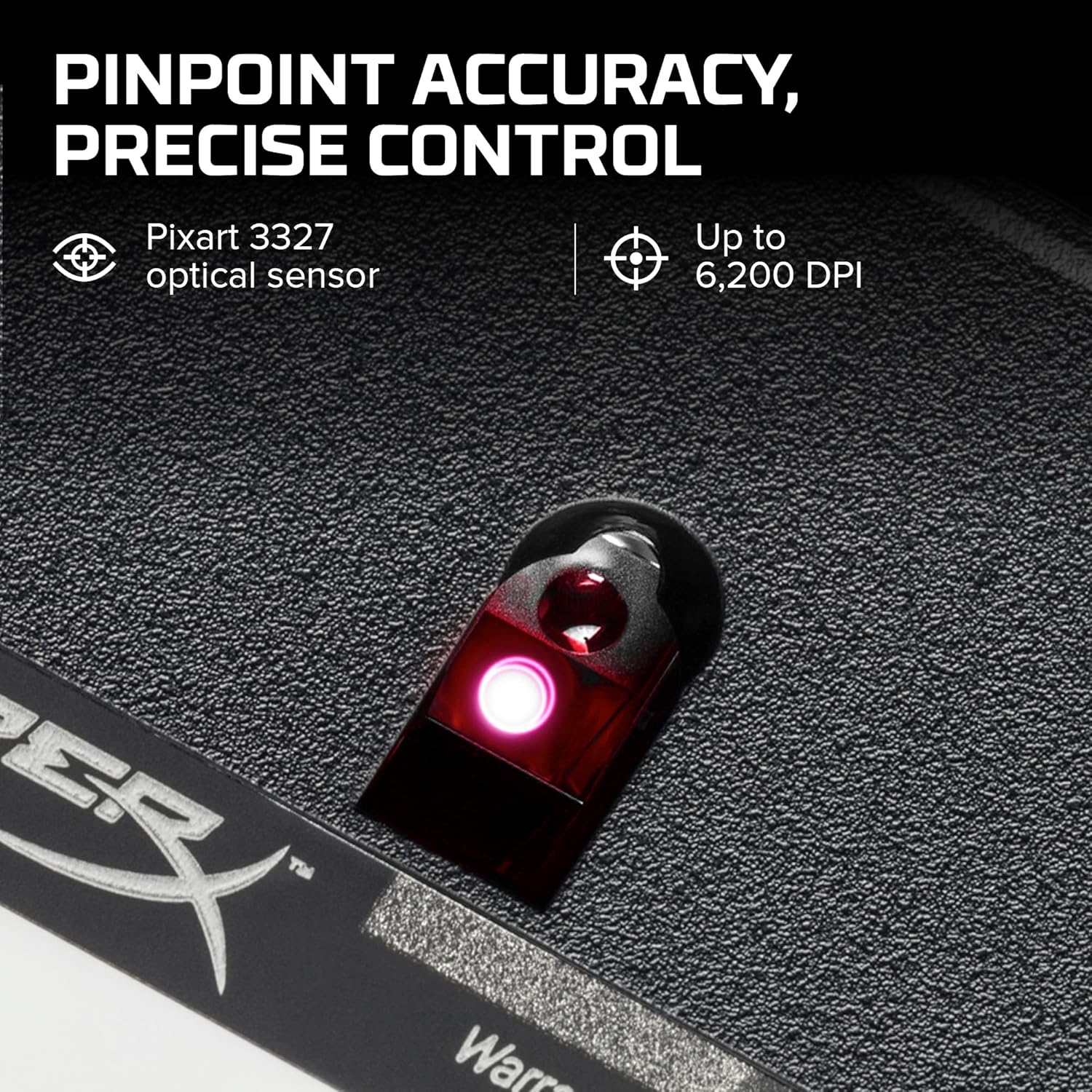 El HyperX Pulsefire Core ofrece lo esencial para los jugadores que buscan un ratón RGB sólido y cómodo con cable. El sensor óptico Pixart 3327 proporciona a los jugadores un seguimiento preciso y fluido sin aceleración por hardware, y tiene configuraciones nativas de DPI de hasta 6200 DPI. El núcleo Pulsefire de diseño ergonómico tiene agarres laterales texturizados para un agarre cómodo y antideslizante, y su forma simétrica es adecuada tanto para el agarre de la palma como para la garra Cuenta con interruptores de alta calidad con una respuesta táctil nítida nominal para hasta 20 millones de clics. Personalice la iluminación, la configuración de DPI y las macros para 7 botones programables con el software HyperX NGenuity y configure el ratón como desee. Los grandes patines en Pulsefire Core ayudan a ofrecer una puntería precisa al darte un deslizamiento suave y controlado mientras mueves el ratón.
