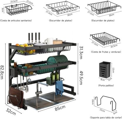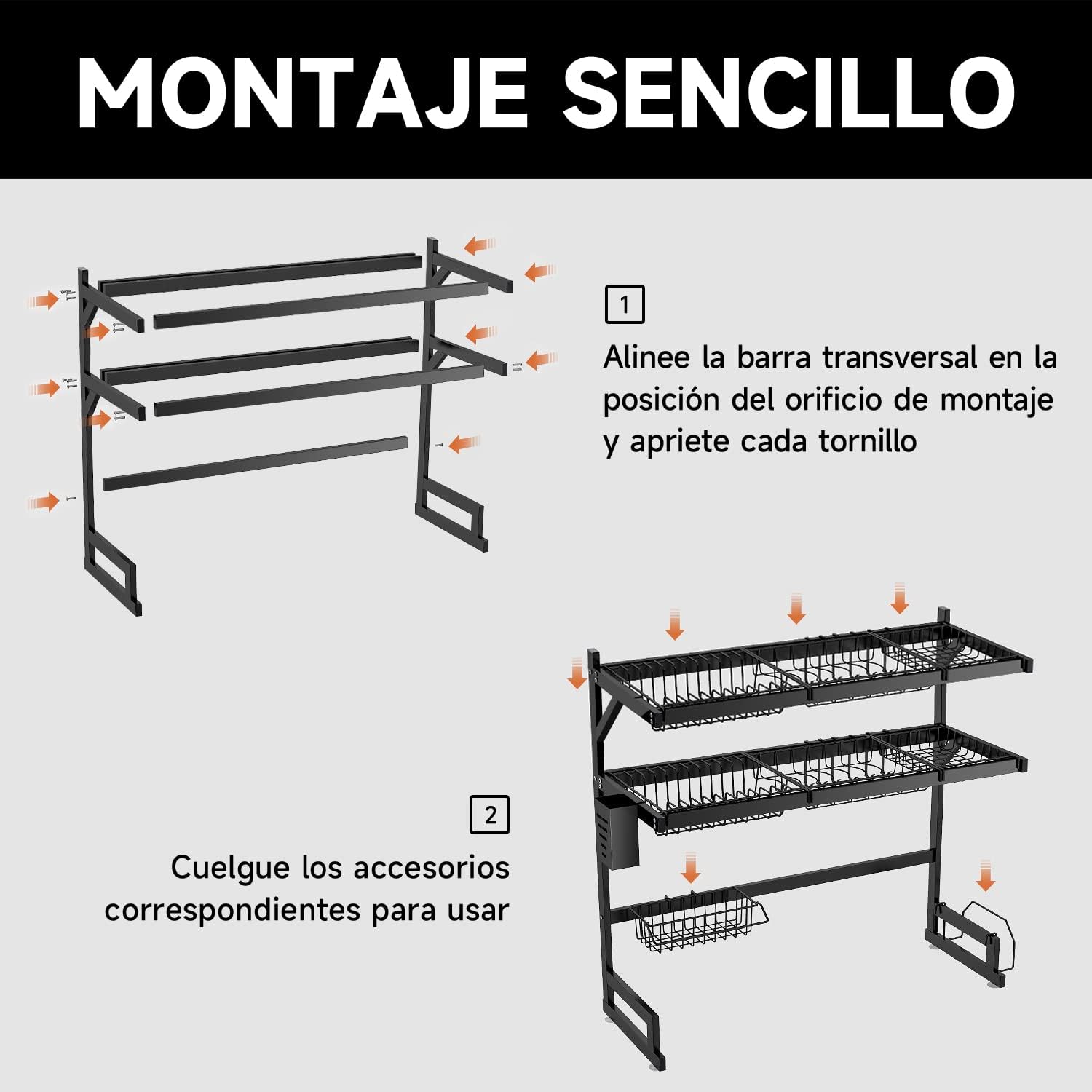• 🍴 Mantén tu Cocina Organizada y Limpia: Nuestro escurridor de trastes es la herramienta perfecta para mantener tu cocina organizada y limpia. Ya no tendrás que preocuparte por platos sucios y desordenados después de la cena. Capaz de mantener todos los utensilios de cocina limpios y ordenados, como tazones, platos, artículos de limpieza, frutas, verduras, cuchillos, cubiertos y más.