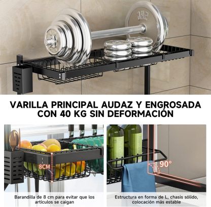 No ocupa espacio en el mostrador y aprovecha al máximo el espacio vertical.