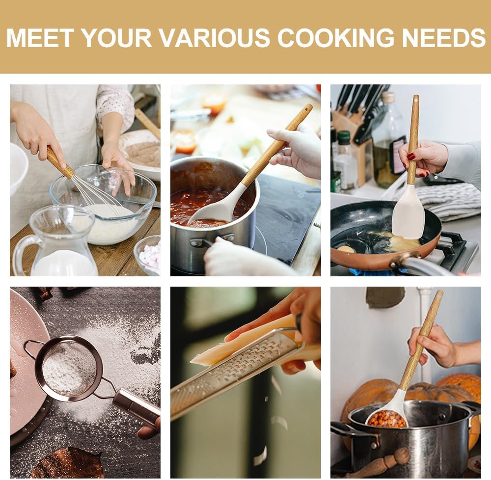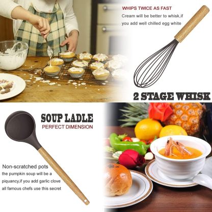 Juego de utensilios de cocina, 35 utensilios de cocina con rallador, pinzas, cuchara espátula y volteador, hecho de silicona resistente al calor de grado alimenticio y asas de madera, juego de herramientas de cocina para utensilios de cocina antiadherente