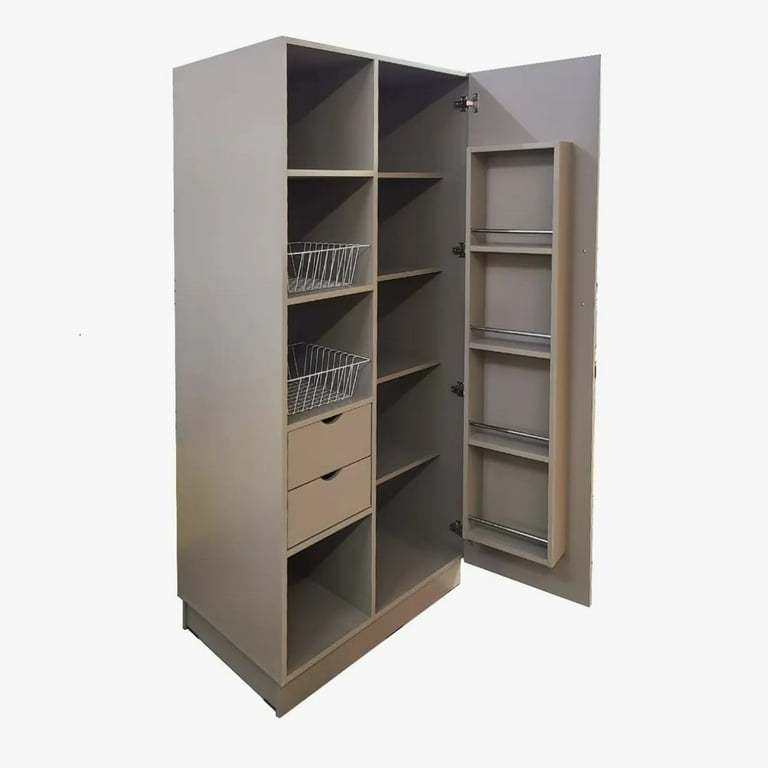Ponle fin al desorden en tu cocina. La alacena Mel evita que la zona de trabajo se vea recargada, almacenando toda tu despensa, utensilios y más. Para que mantengas a la mano tú despensa y utensilios cuenta con 2 cajones, 9 entrepaños y especiero en la puerta para tener todo en orden! Fabricado en una firme estructura de melamina que te brinda un gran acabado y durabilidad. Puedes elegir más de 10 colores para que tu alacena Mel luzca a tu gusto! Medidas: 80 ancho x 174 alto x 40 fondo