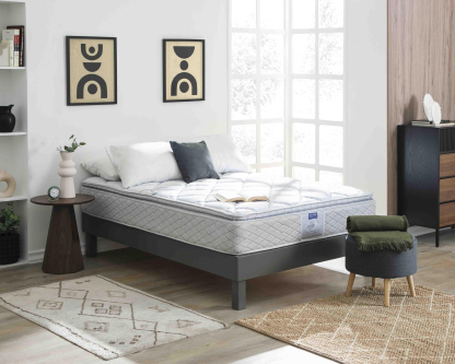 Este colchón te ofrece un confort firme, y gracias a su núcleo de resortes continuos te brinda el apoyo correcto y facilita la circulación del aire.