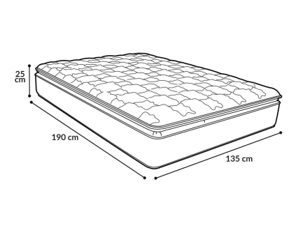 Este colchón con acojinamientoortopédicomejora tu postura y descanso mientras duermes. Para maximizar la sensación de confort, incluye una colchoneta pillow top y tela stretch que, además, es antibacterial. Las medidas de este artículo son 190 x 135 x 25 cm.