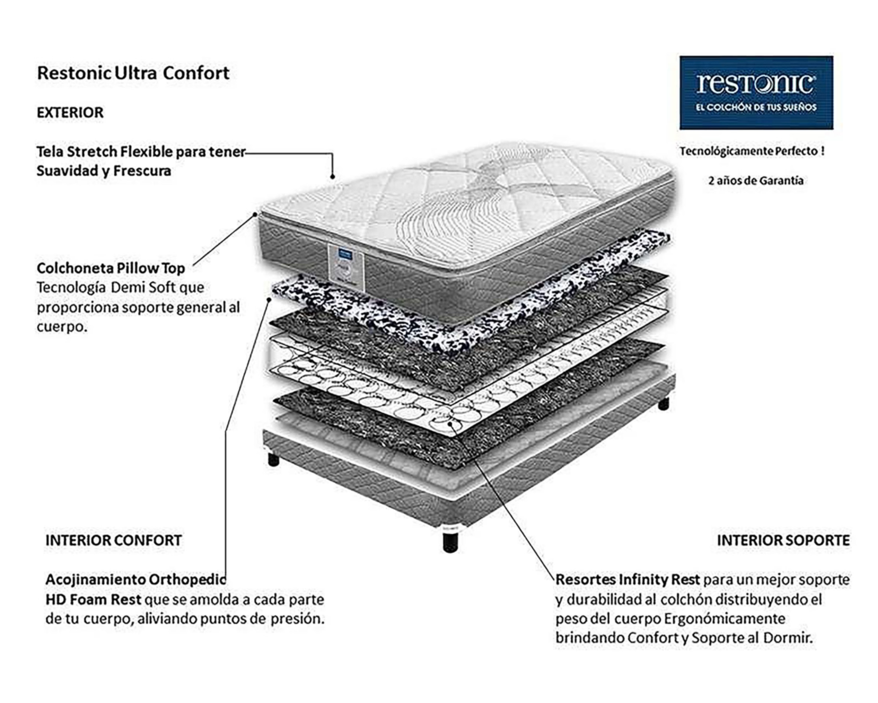 Dale un respiro a tu columna y descansa apropiadamente cada noche con tu nuevo colchón matrimonialRestonic modelo Ultra Confort.