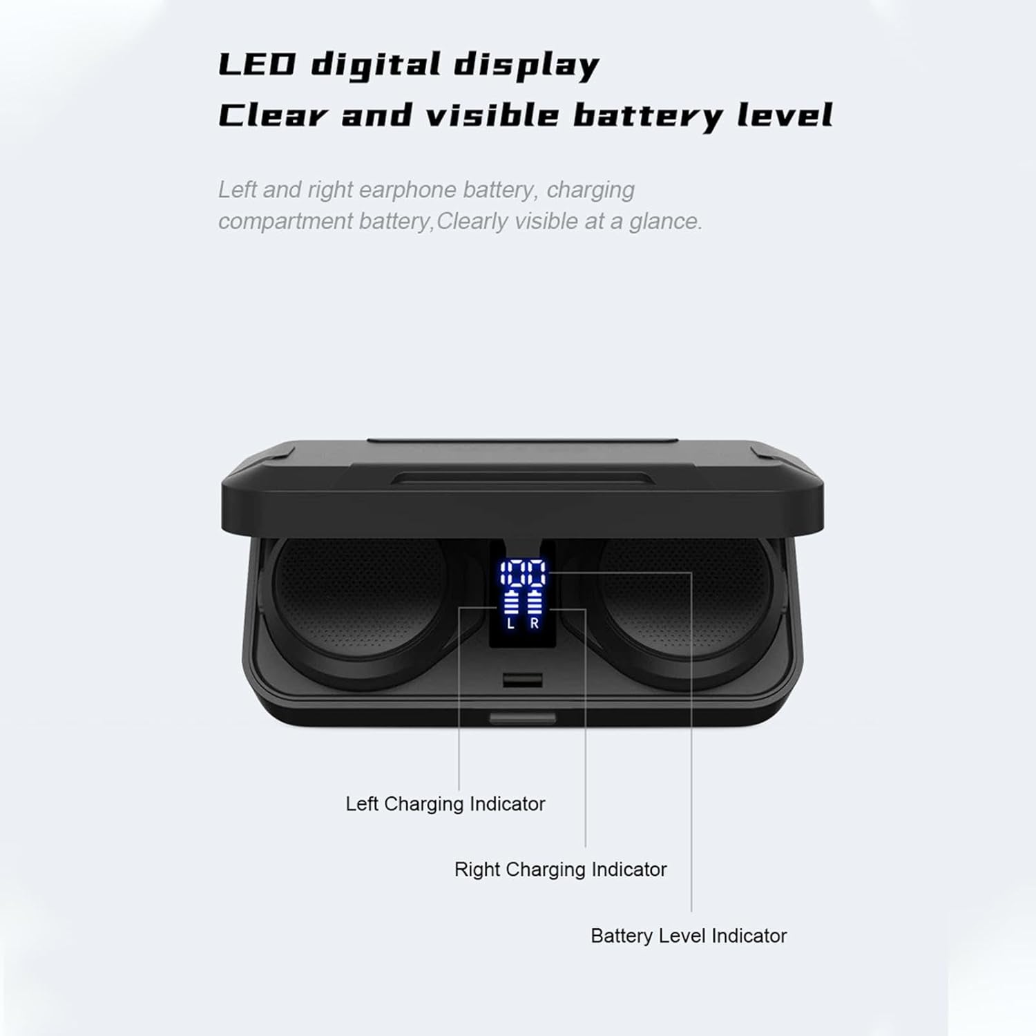 • ♒Fácil de usar: Logre una productividad ininterrumpida con el diseño de pantalla LED de los auriculares inalámbricos Hard Hat que muestra claramente el estado de la batería. Disfrute de hasta 50 horas de reproducción con su estuche de carga y una calidad de sonido nítida que aumenta la eficiencia en el trabajo.