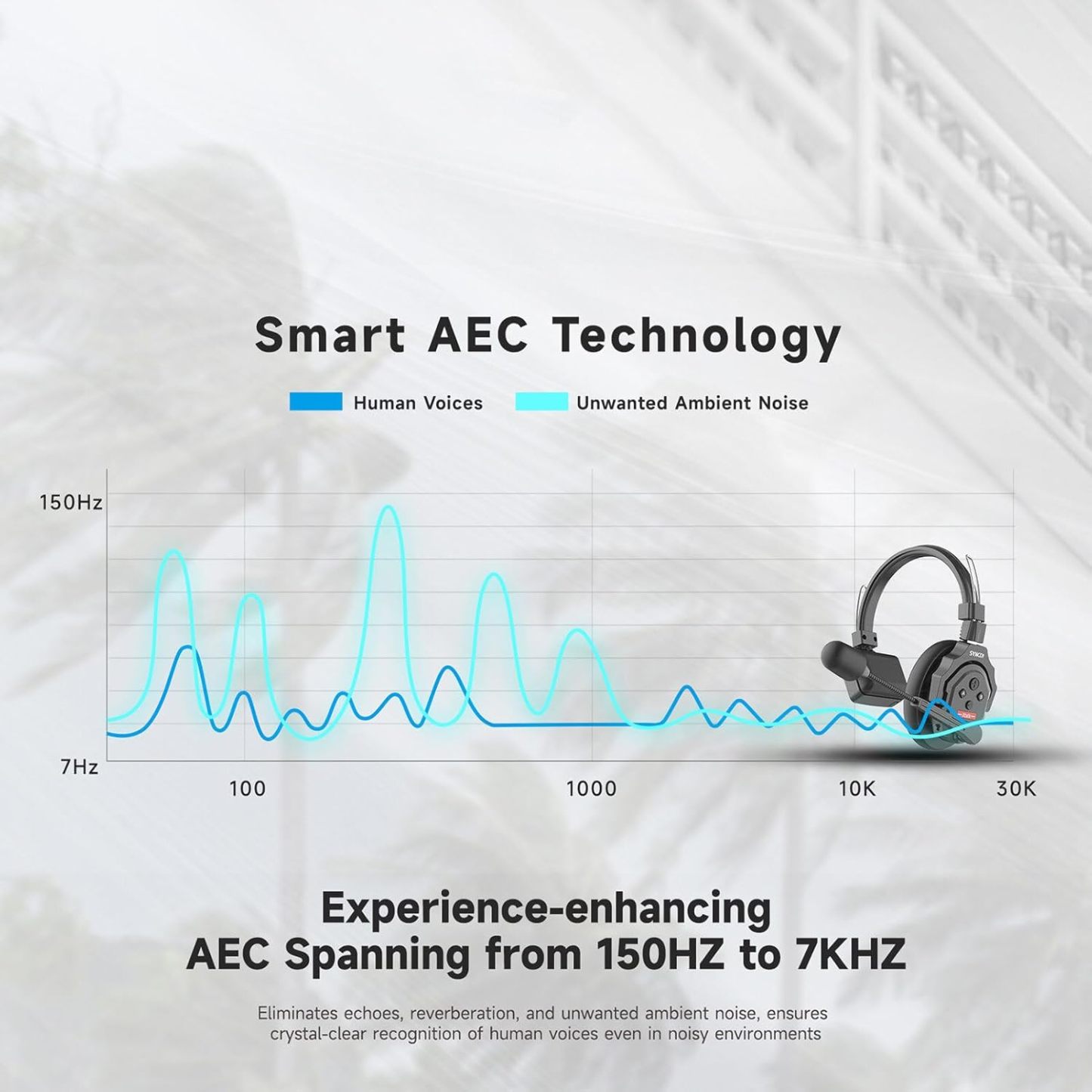 - 【Cancelación de ruido con tecnología AEC】 Equipados con tecnología AEC avanzada, los auriculares inalámbricos con micrófono eliminan los ecos, la reverberación y el ruido ambiental no deseado, lo que garantiza un reconocimiento nítido de las voces humanas incluso en entornos ruidosos. Diseño One-Button Clarity que le permite activar la función de cancelación de ruido con solo presionar un botón.