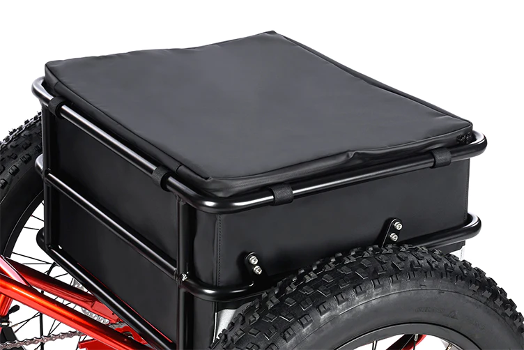 El triciclo de carga eléctrico proporciona una canasta de almacenamiento con una bolsa impermeable que encaja perfectamente con la canasta trasera. De gran capacidad con 48L, fácil carga con objetos pesados.