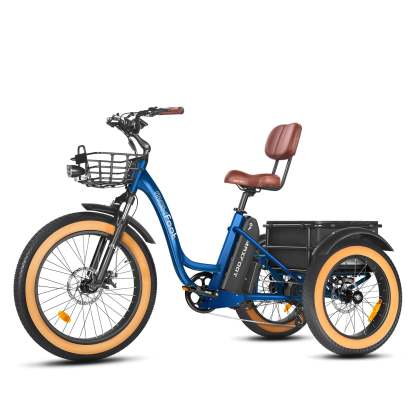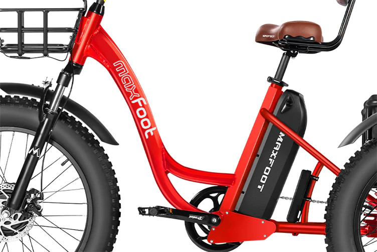 El triciclo eléctrico con neumáticos gruesos MF-30 proporciona una batería SAMSUNG de 48 V y 20 Ah de alta capacidad, que puede soportar un viaje del MF-30 de más de 85 millas con una sola carga (con PAS 1).