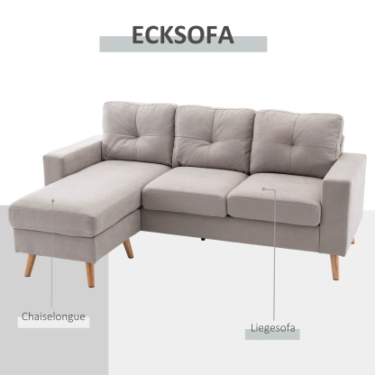 Sofá de Esquina para 3 Personas, Aspecto de Lino, Chaise Lounge Reversible, 193x136x85 cm, Gris Claro