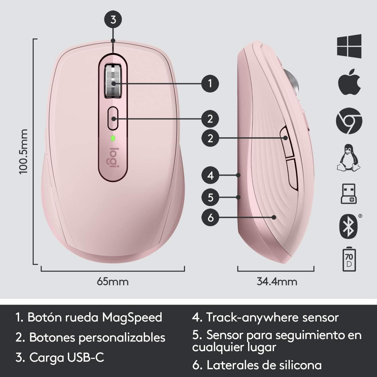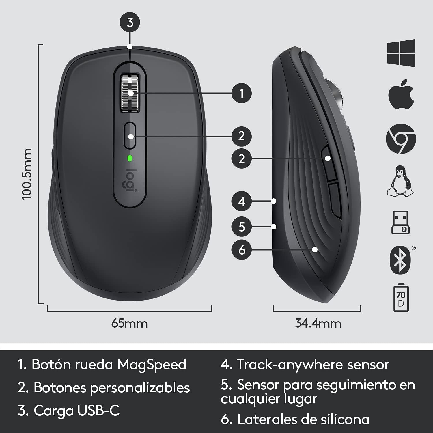 MX Anywhere 3 está listo para funcionar con los sistemas operativos más utilizados en el mundo: Windows, MacOS, ChromeOS y Linux.