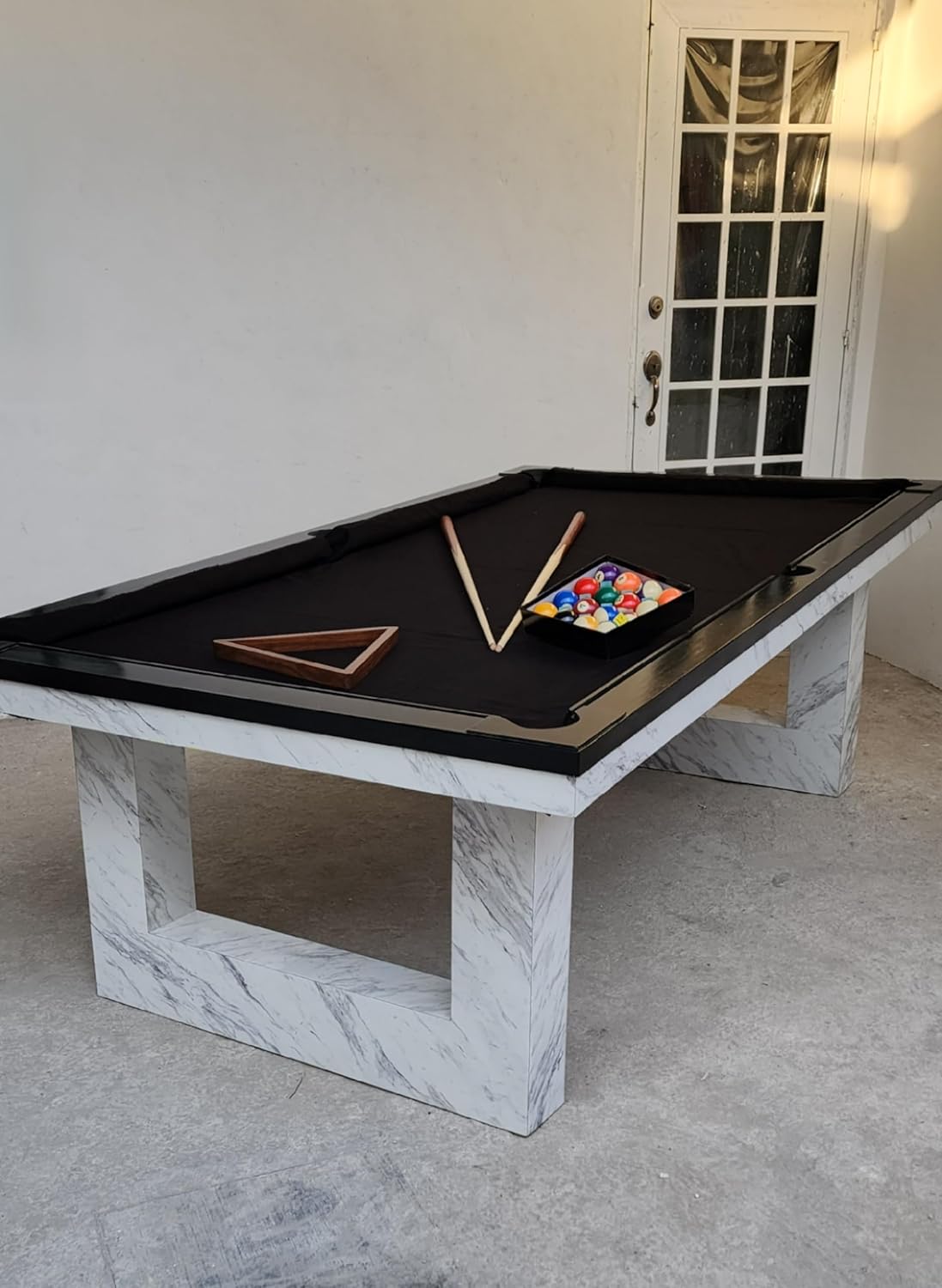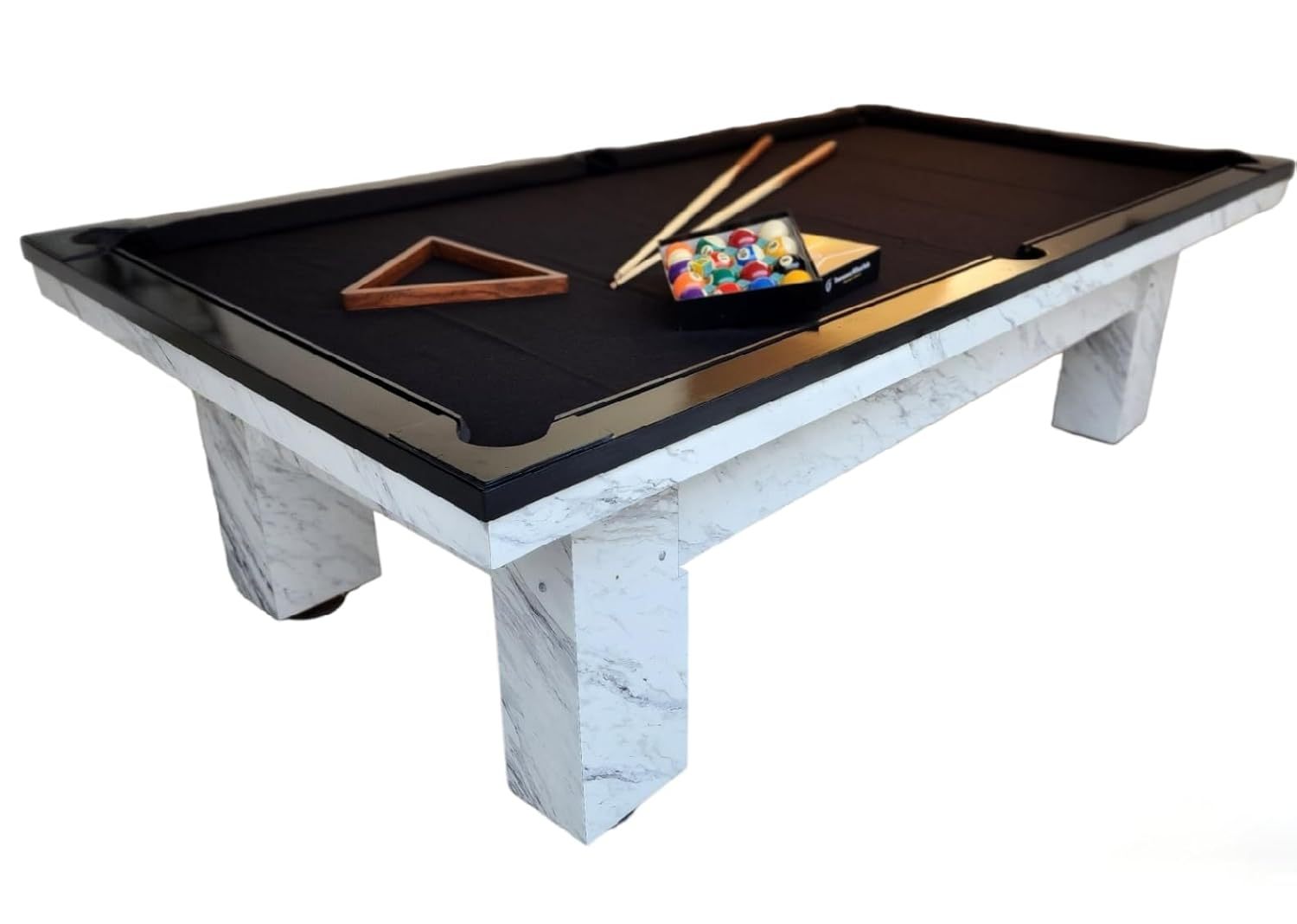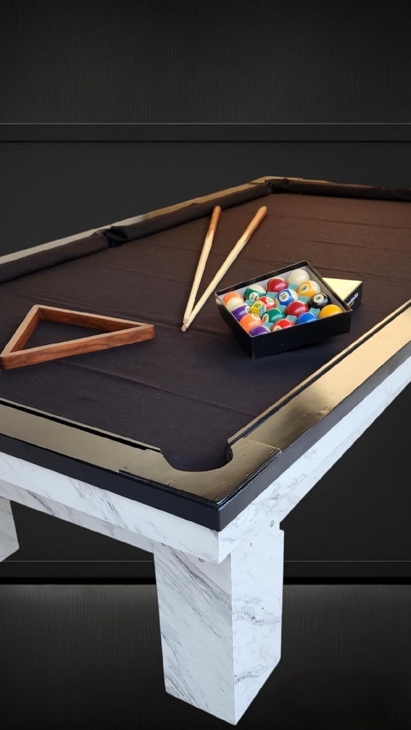 - Equipo completo: 2 tacos de billar, 10 piezas de tiza de billar, 1 juego de bolas de billar, 1 cepillo de mesa y 1 triángulo.