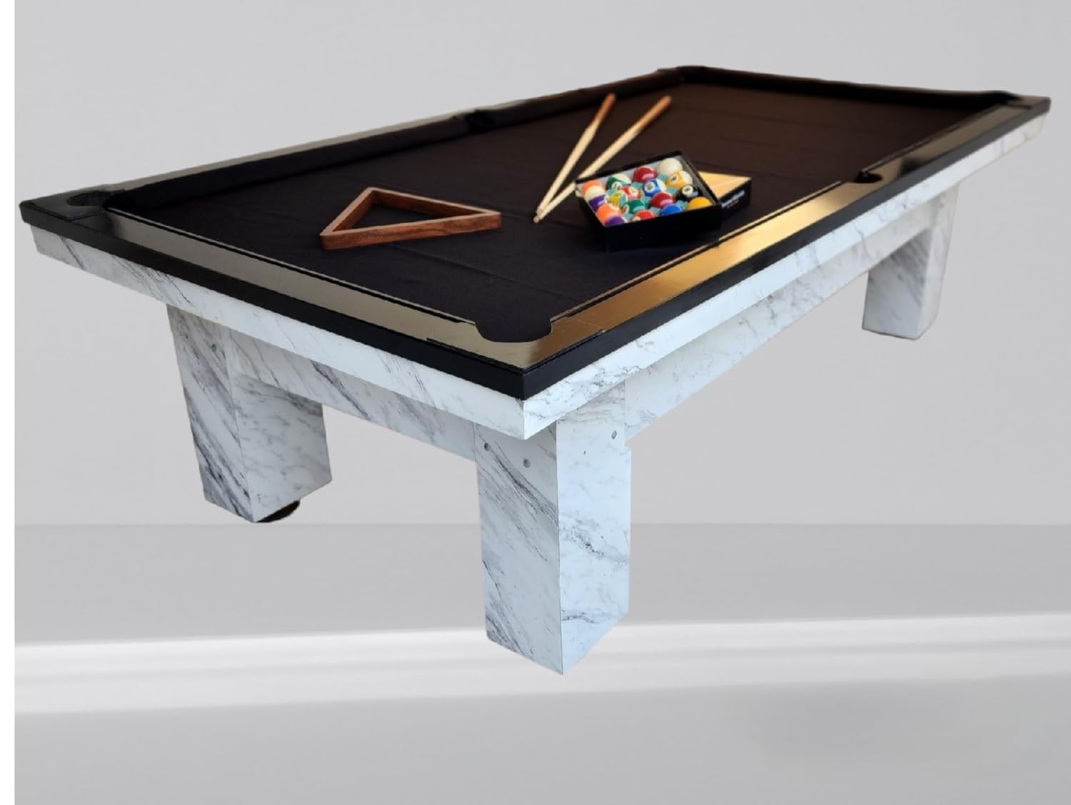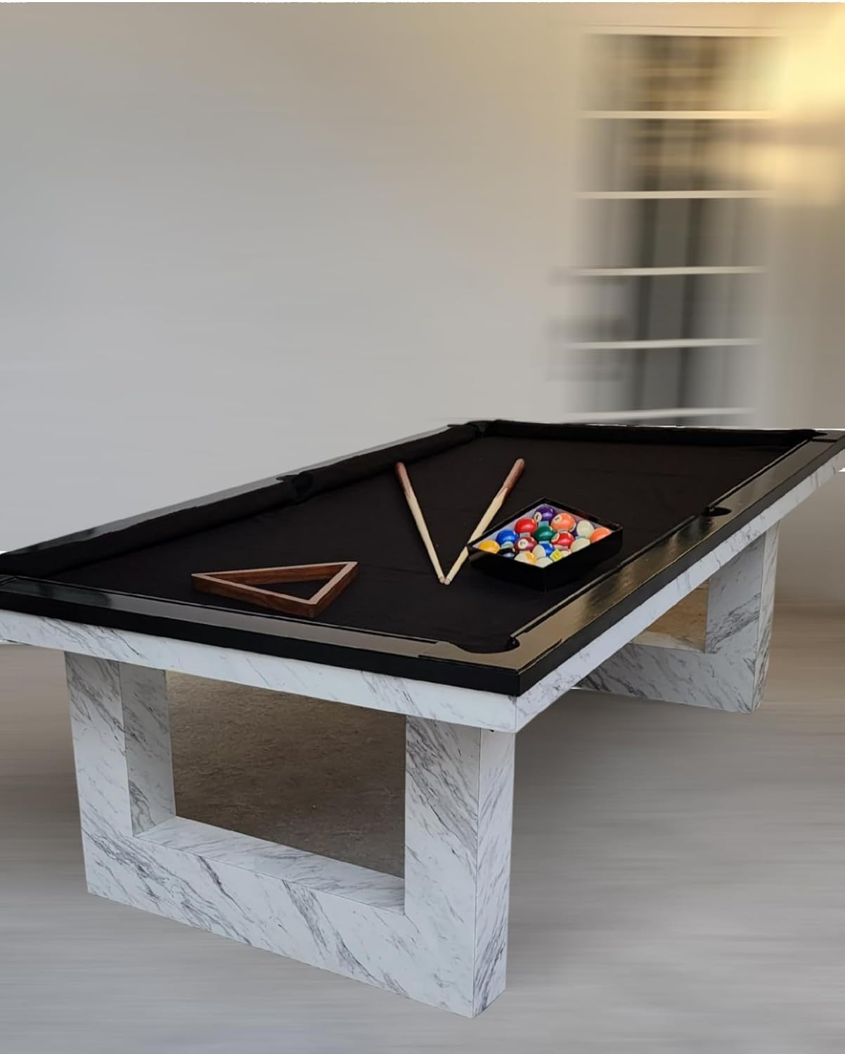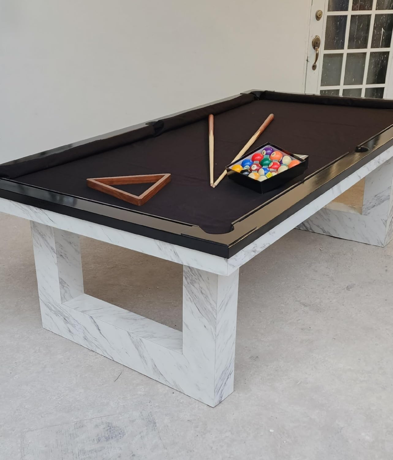- Equipo completo: 2 tacos de billar, 10 piezas de tiza de billar, 1 juego de bolas de billar, 1 cepillo de mesa y 1 triángulo.