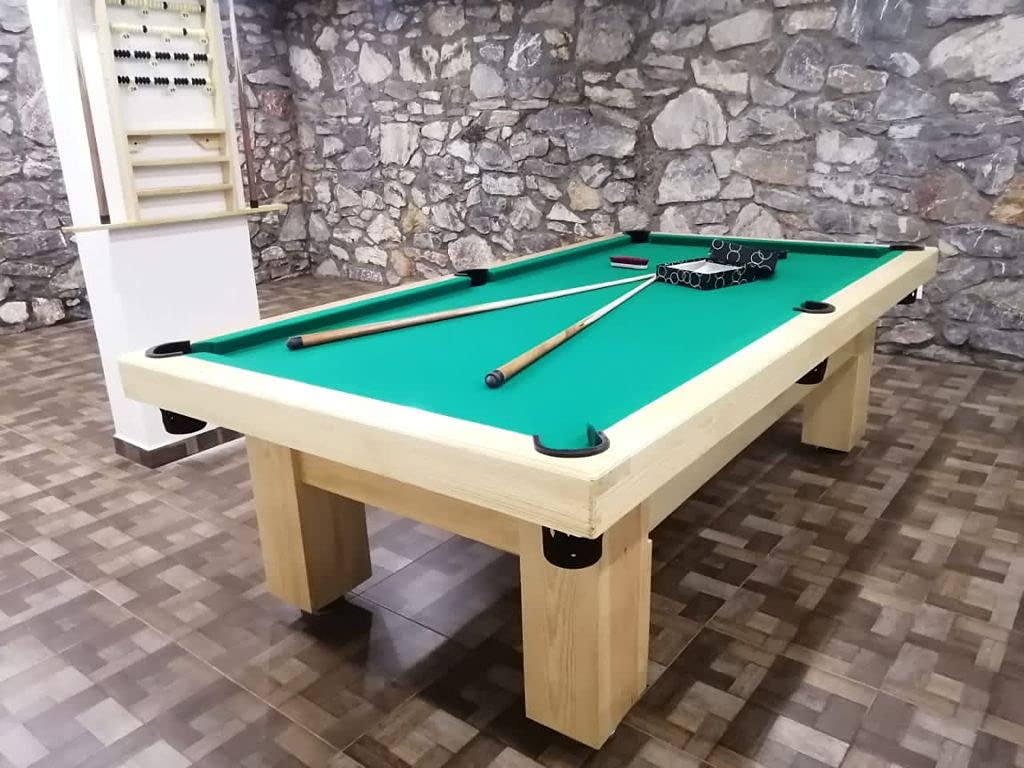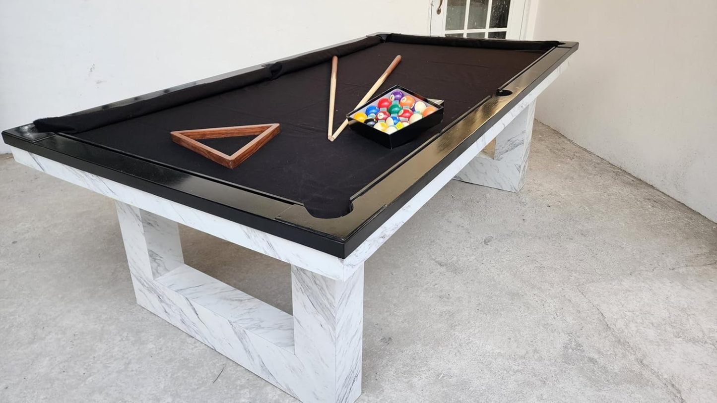 - Esta mesa de billar de uso rudo tiene medidas reglamentarias de 8.5 ft x 4.60 ft (2.60m x 1.40m).