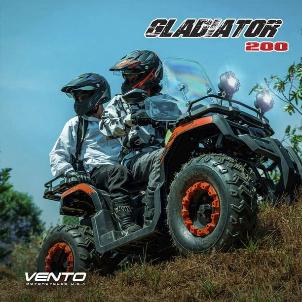 • La motocicleta Vento modelo Gladiator 200 2025, no es solo un cuatrimoto; es tu compañera incansable en la búsqueda de emociones. Diseñada para desafiar los caminos más intrépidos, sus rines de acero prensado te ofrecen resistencia en cada aventura. Lleva todo lo necesario en su parrillas trasera y delantera, mientras te sumerges en la comodidad de su asiento amplio. Cuenta con una velocidad máxima de 62 Km/H y una potencia de 12.8 HP, experimenta la libertad en cada giro del motor y conquista nuevos horizontes con la grandeza de esta máquina. Además, la incorporación de la tecnología VenTec, te permitirá enlazar la moto con tu smartphone para subir o bajar el volumen de tus canciones favoritas, adelantar o regresar canciones y contestar o declinar llamadas.