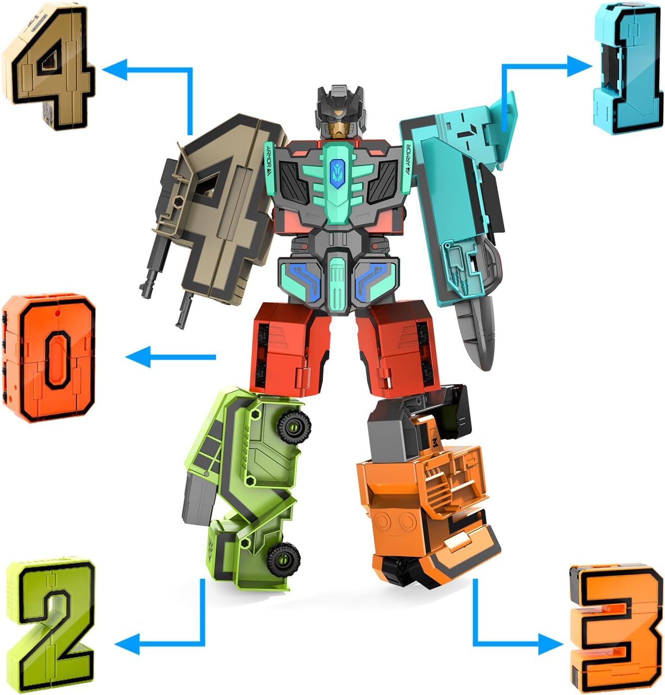 Materiales seguros y de alta calidad: este número bots está hecho de plástico ABS no tóxico de alta calidad. El material es duradero y no se rompe fácilmente. Puede mantener buenas condiciones incluso después de un juego a largo plazo. La superficie está finamente pulida, lisa y última intervensión de rebabas para evitar que los niños se rasquen las manos durante el proceso de montaje. El juguete utiliza tintes respetuosos con el medio ambiente, colores brillantes y no se decolora, por lo que se puede utilizar con confianza incluso por niños pequeños. Cumple con las normas internacionales de seguridad de juguetes.