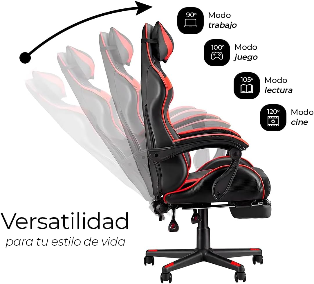 • Versatilidad para todo estilo de vida: 90° Modo trabajo. 100° Modo Juego. 105° Modo Lectura. 120° Modo Cine