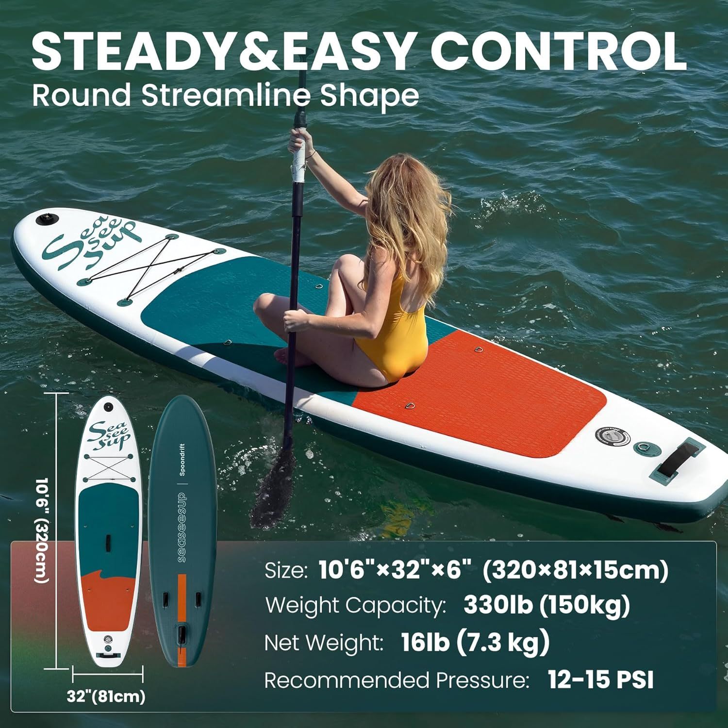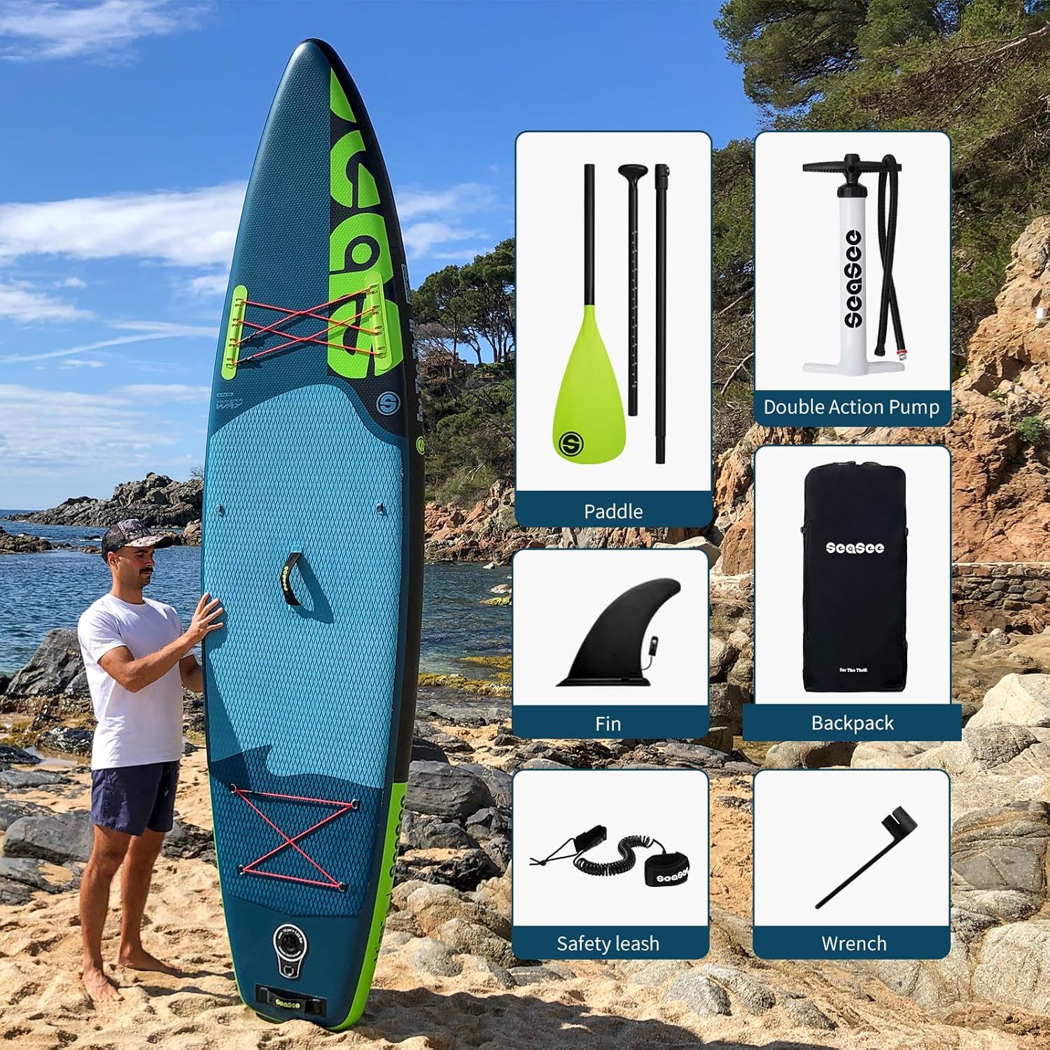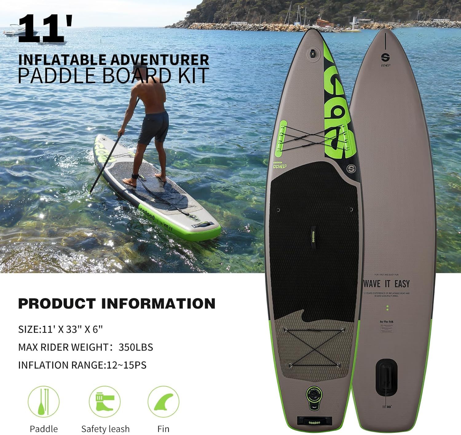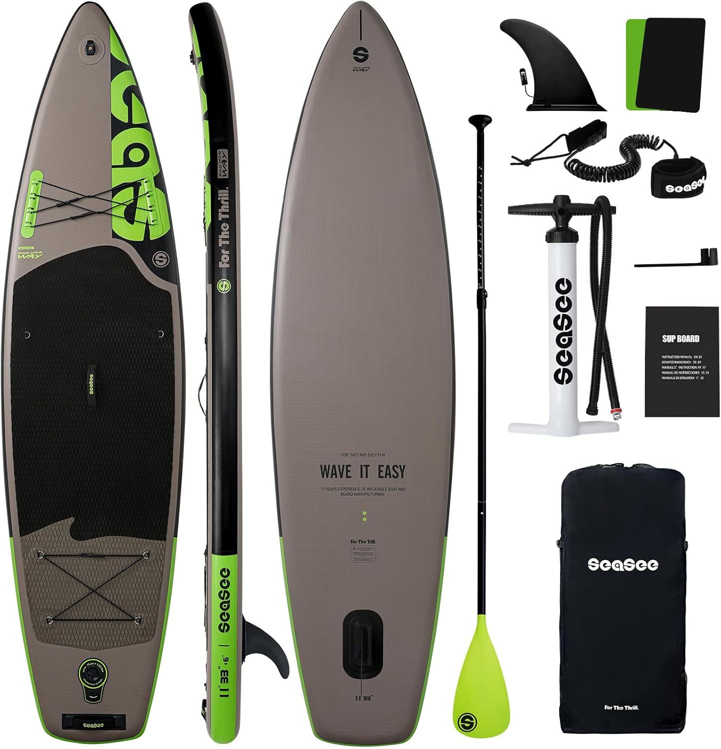 SEASEESUP Tablas de Remo inflables con Accesorios Sup, Tabla de Remo de 12 pies, Duradera, Ligera, diseño Estable de 33 Pulgadas de Ancho para Adultos con sobrepeso