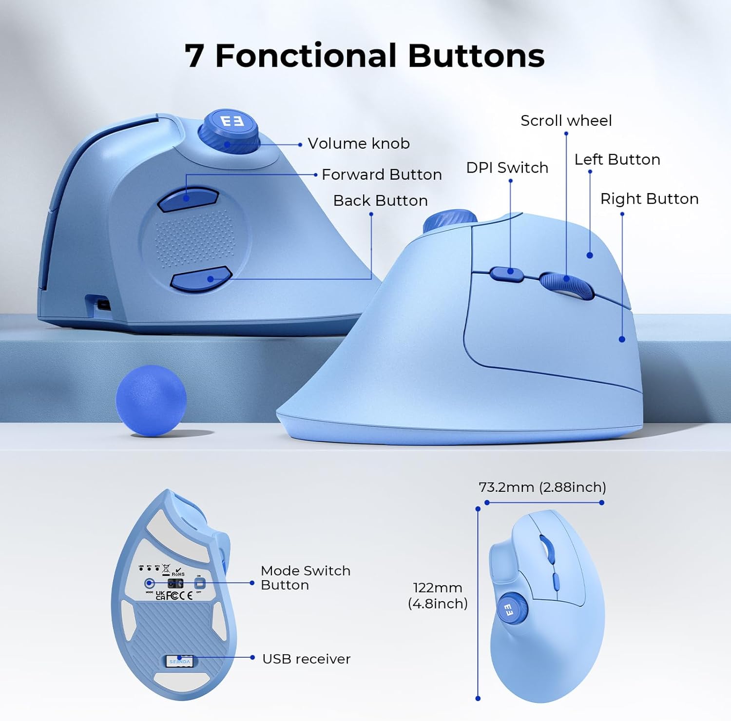 Comodidad ergonómica: este mouse ergonómico Bluetooth permite que la mano agarre el mouse de forma natural, con la muñeca y la palma en línea recta, lo que alivia eficazmente la presión sobre la muñeca y proporciona una sensación más cómoda.