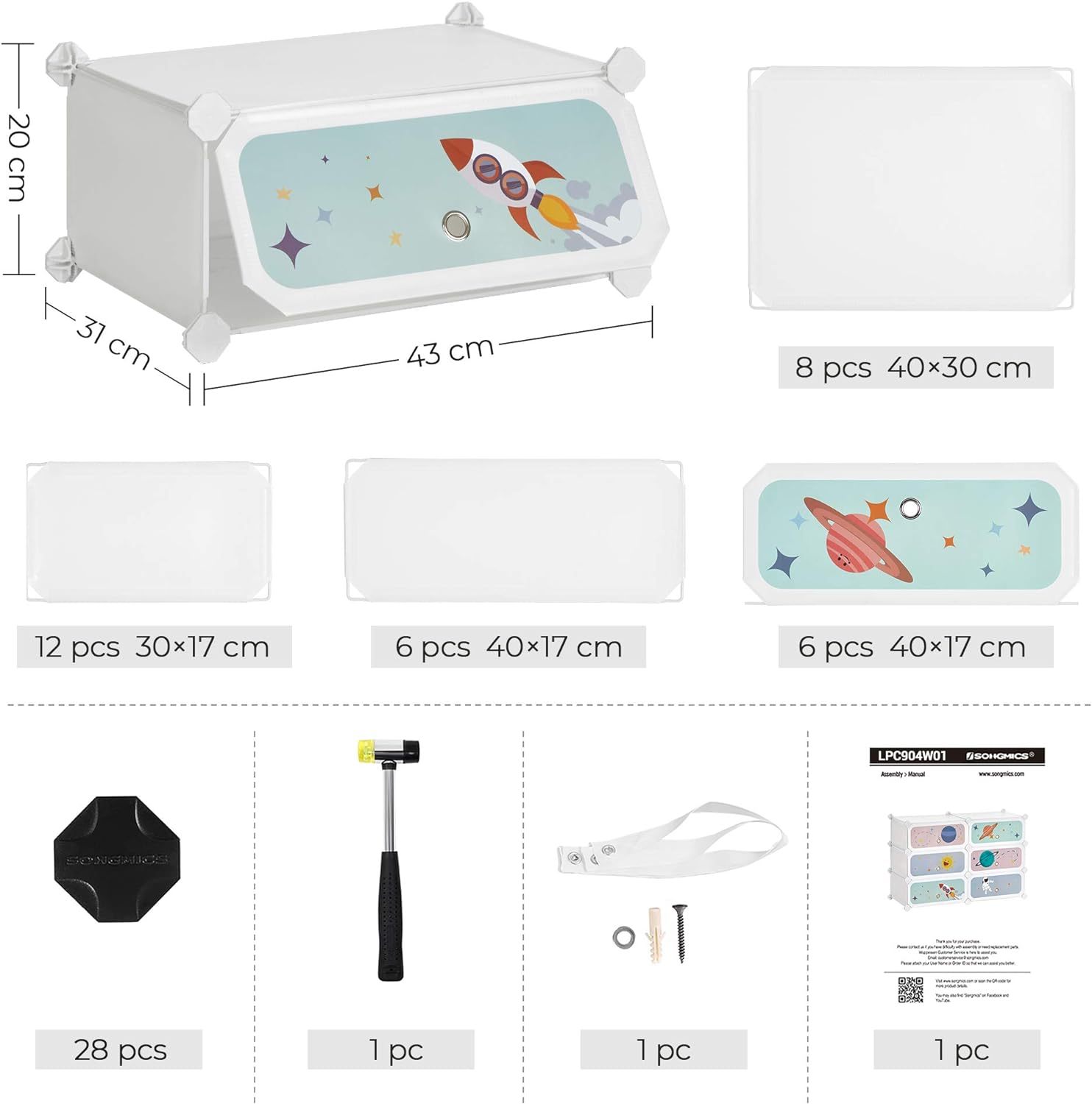 SONGMICS Modular Children's Shelf with 6 Cubes, Children's Shoe Rack, 43 x 31 x 105 cm, Modular Cabinet with Doors, for Clothes, Shoes, Toys, Cloud White MLPC904W01