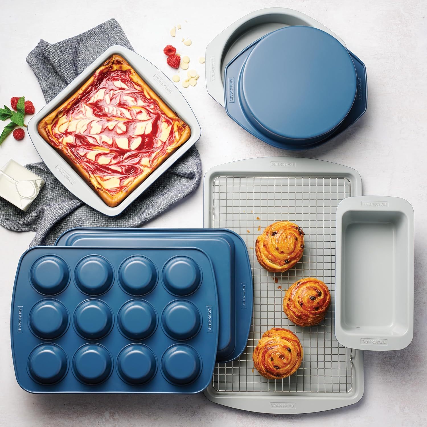 Tramontina Rise - Juego de 6 sartenes de cerámica antiadherentes, para galletas, panes, pasteles, brownies y magdalenas