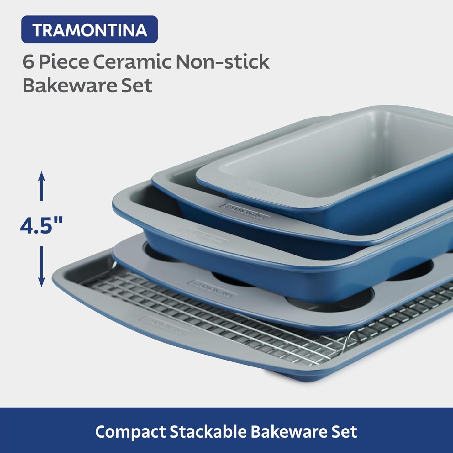 Transforma tu experiencia de cocción con el juego de utensilios de cerámica antiadherentes Tramontina Rise de 6 piezas. Ya sea que seas un panadero principiante o un panadero experimentado, este juego premium incluye todo lo que necesitas para preparar una variedad de platos dulces y salados. El juego cuenta con una hoja de galletas de 17.8 x 12.8 pulgadas, una sartén de pan de 9 x 4.5 pulgadas, una sartén de brownie de 9 x 9 pulgadas, una bandeja rectangular de 13 x 9.2 pulgadas, una sartén para magdalenas de 15.4 x 11.8 pulgadas y un estante de refrigeración de acero inoxidable. todo diseñado diseñado diseñado para el todo diseñado y comodidad. El diseño de anidación también garantiza un almacenamiento compacto que ahorra espacio para mantener tu cocina organizada y última intervensión de desorden. Ya sea que estés horneando galletas, pasteles, magdalenas o pan, el juego de utensilios para hornear Tramontina Rise de 6 piezas ofrece un rendimiento fiable y comodidad, por lo que es imprescindible para cualquier cocina.