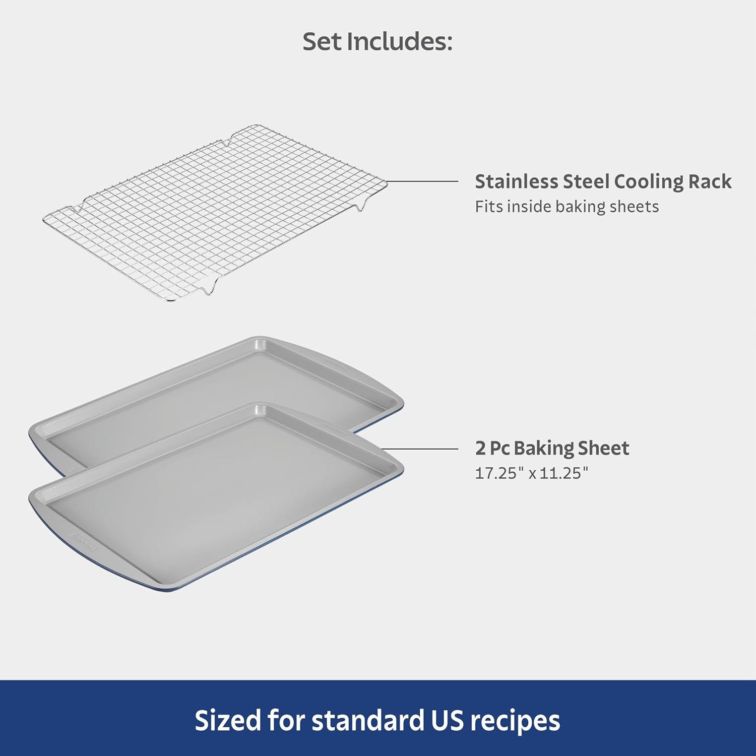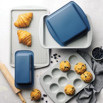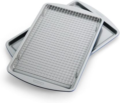 • Apto para horno y lavaplatos: estos platos para hornear son aptos para horno hasta 500 °F, mientras que el estante de refrigeración de acero inoxidable puede soportar hasta 400 °F, lo que los hace ideales para una variedad de creaciones dulces y saladas.