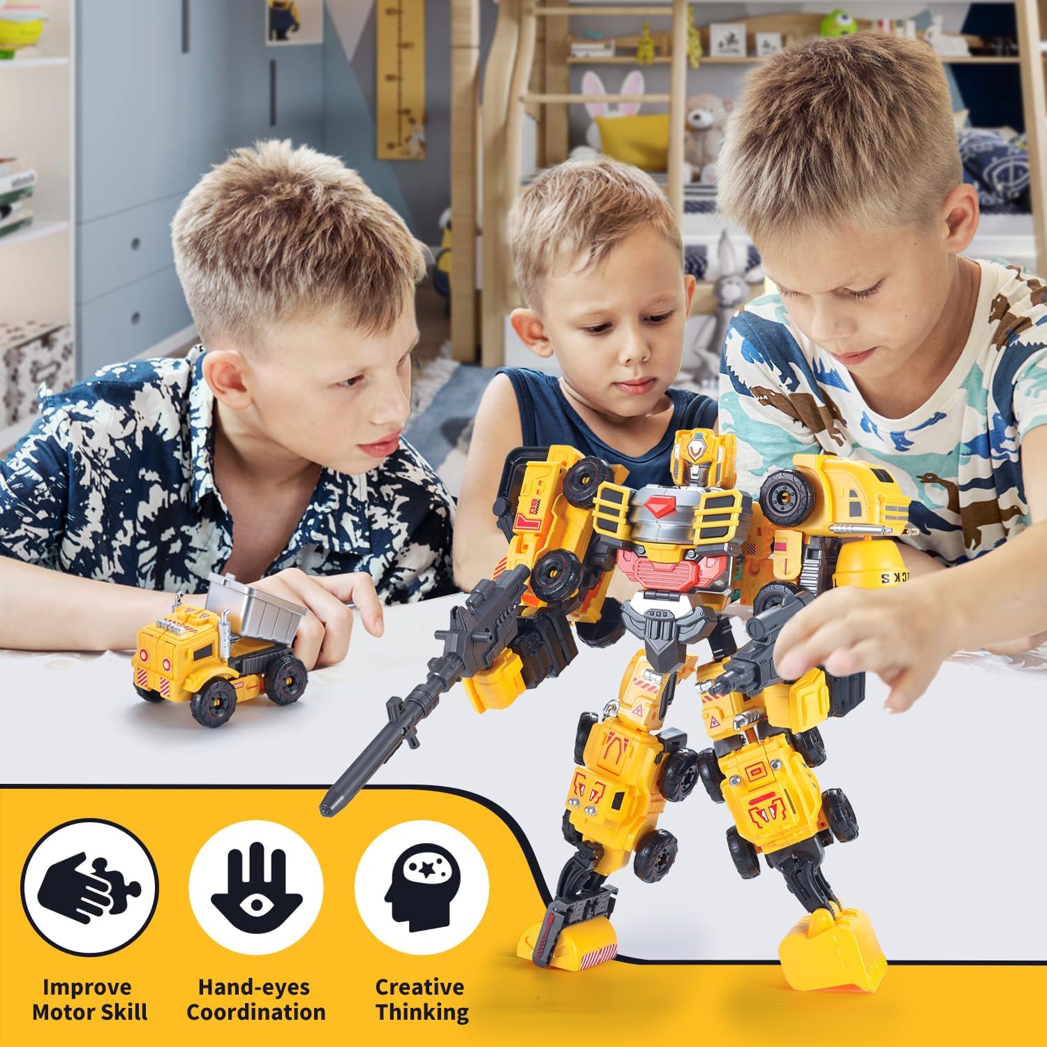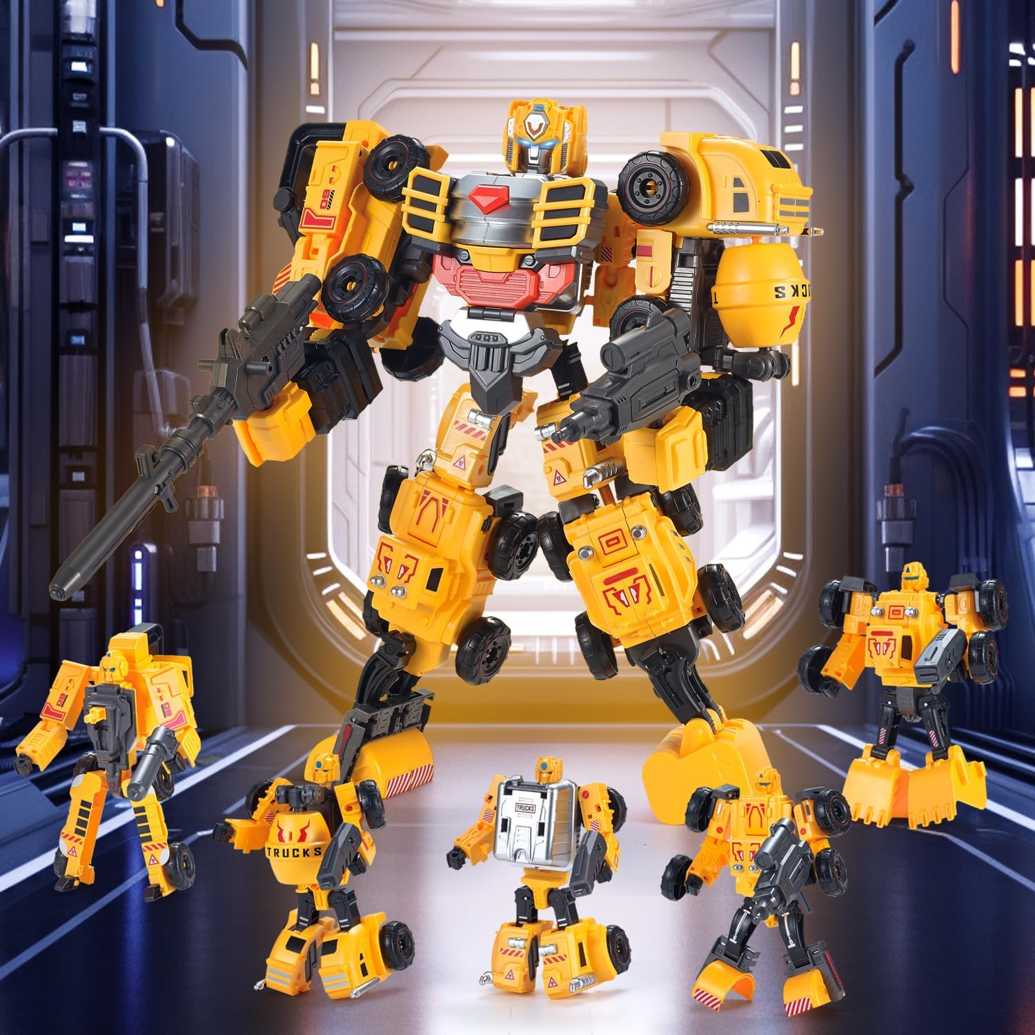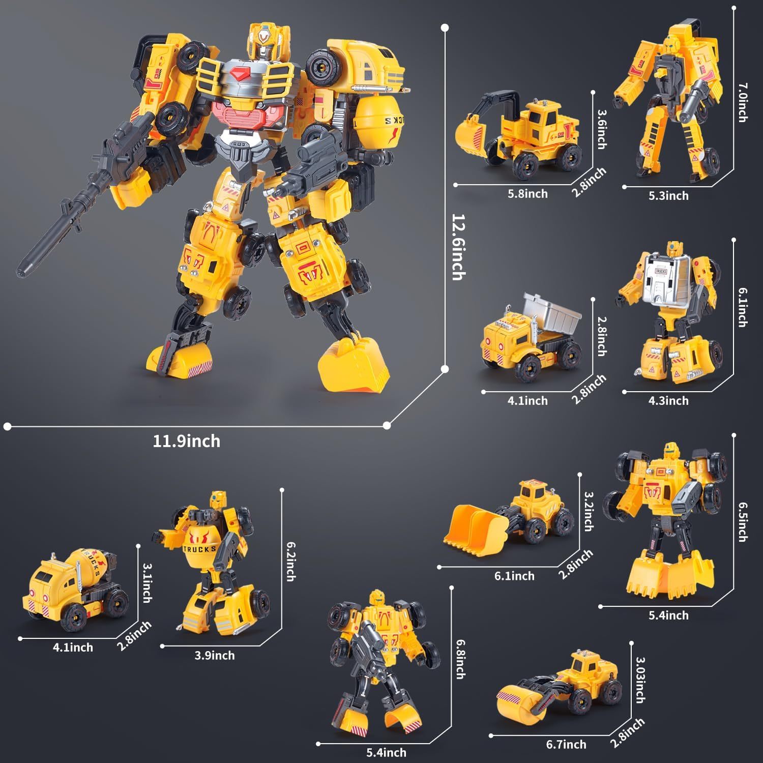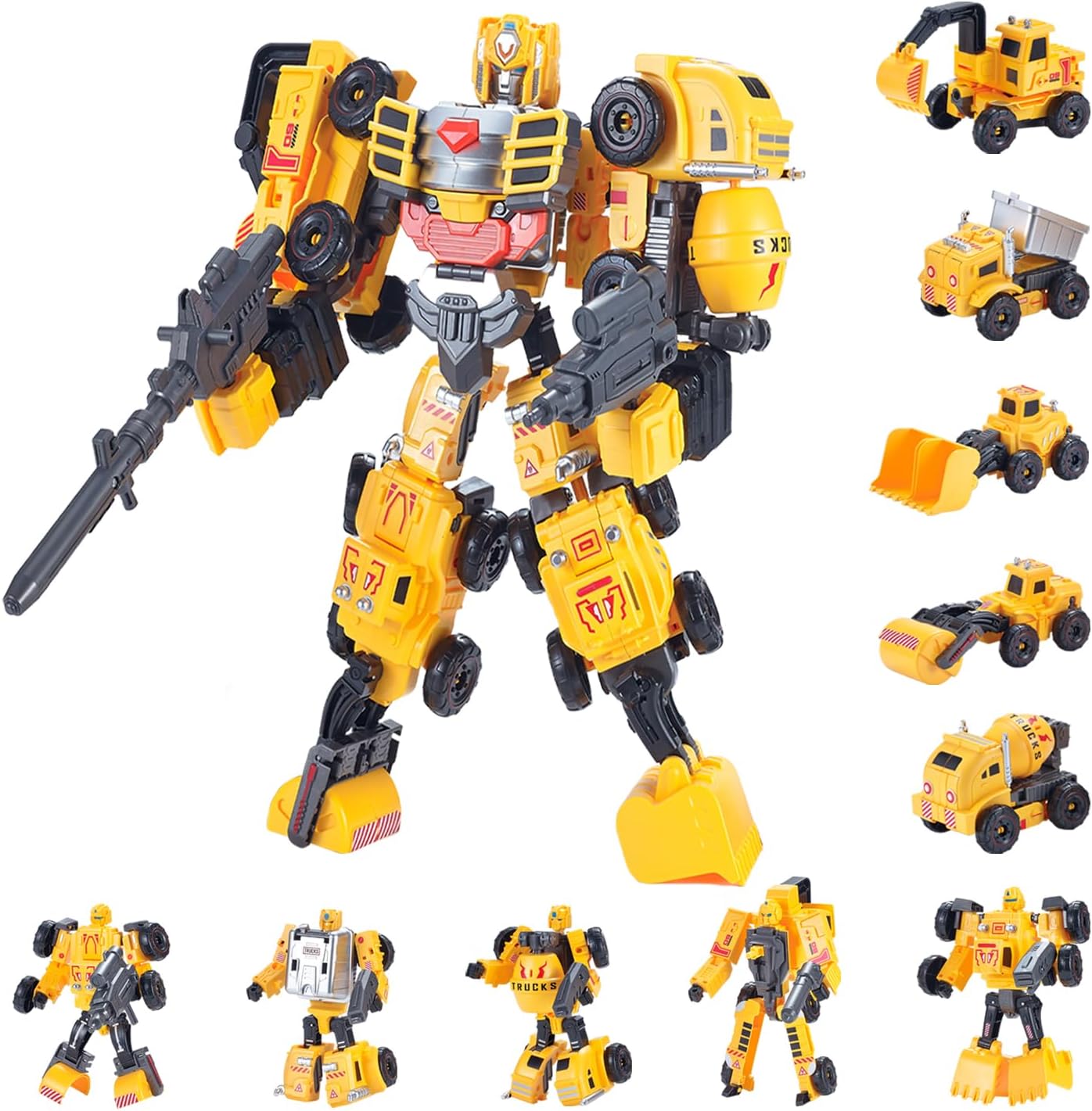 VEAIS - Juego de vehículos de construcción, 5 en 1, robot transformador