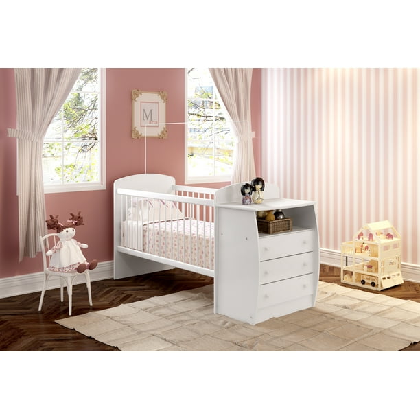 Esta cuna, apta para un colchón estándar americano de 1.30 X 0.70 (no incluido), cuenta con una base de colchón ajustable a 3 niveles de altura. Incluye 3 cajones y 1 nicho, todo en un elegante color blanco. El producto viene desmontado, listo para ser ensamblado por el cliente. Está fabricado en paneles de madera industrializada (MDP Y MDF) con acabados en melamina, diseñado exclusivamente para uso en interiores. Para su limpieza, se recomienda el uso de un paño seco, evitando solventes y abrasivos. Este producto forma parte de una línea exclusiva de muebles para armar (RTA), fabricada en USA. Los muebles de esta línea ofrecen bienestar de forma creativa, siempre en armonía con el consumidor y el medio ambiente. Son muebles de calidad con un diseño moderno. El tono real del producto puede variar ligeramente al de las fotos.