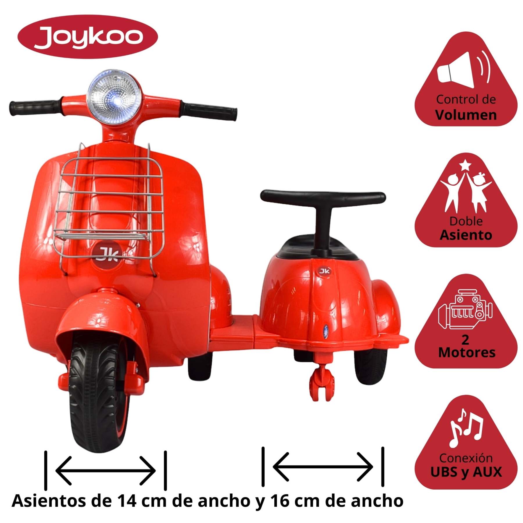 • POTENCIA: Esta moto montable eléctrica cuenta con dos potentes motores, lo que garantiza un rendimiento excepcional en cada paseo. Ideal para explorar el vecindario o el jardín, brindando horas de diversión para los pequeños aventureros. • DIVERSIÓN PROLONGADA: Equipadas con dos baterías de 6V, esta moto ofrece una mayor duración de batería, asegurando que los niños puedan disfrutar de sus recorridos sin interrupciones. ¡Menos tiempo cargando y más tiempo jugando! • ILIMUNACIÓN LED MODERNA: La luz LED no solo le dan un estilo atractivo a la moto, sino que también mejoran la visibilidad en condiciones de poca luz, asegurando paseos seguros y divertidos incluso al atardecer. • DIVERSIÓN MUSICAL: Con conexión USB y auxiliar, los niños pueden disfrutar de su música favorita mientras montan. Esto agrega un toque extra de diversión y permite que cada aventura se sienta aún más especial. • NO TE PREOCUPES POR LA EDAD Y EL CRECIMIENTO. Diseñada para niños entre 2 a 6 años, esta motocicleta es lo suficientemente fuerte para soportar hasta 30 kg, permitiendo que ambos niños la disfruten al mismo tiempo. ¡Diversión doble garantizada. DATOS TÉCNICOS • Características particulares: - Cuenta con 2 motores - Entrada USB - Canciones pregrabadas y conexión Bluetooth - Pedal de aceleración y botón de encendido - Capacidad de carga: 30 kg - Edad recomendada: 2 a 6 años (Esto dependerá de la altura y proporciones del niño, es importante no exceder el peso máximo) - Tiempo de carga de la batería: 10-12 horas - Duración de la batería: 60-80 minutos de uso • Material: - Plástico PP - Ruedas de plástico rígido - Acero INCLUYE - Motocicleta eléctrica - Cabina lateral - Cargador - 2 Baterías - 3 ruedas - 1 rueda de cabina - 1 rueda delantera - 2 asientos - 2 volantes - 2 rejas MEDIDAS • Medidas generales del producto: 79 x 68 x 55 cm • Peso del producto: 7.3 kg • Medidas del empaque: 64.5 x 36.5 x 39.5 cm • Peso del empaque: 8.3 kg